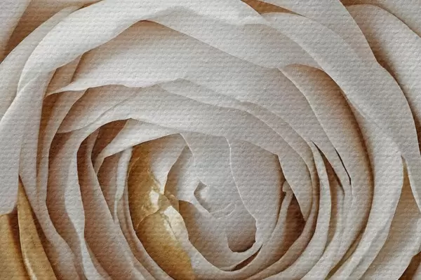 Bild Eine weiße minimalistische dekorative Rose mit gelben Akzenten, die Blütenblätter sind geschichtet und gekräuselt Nr r43160