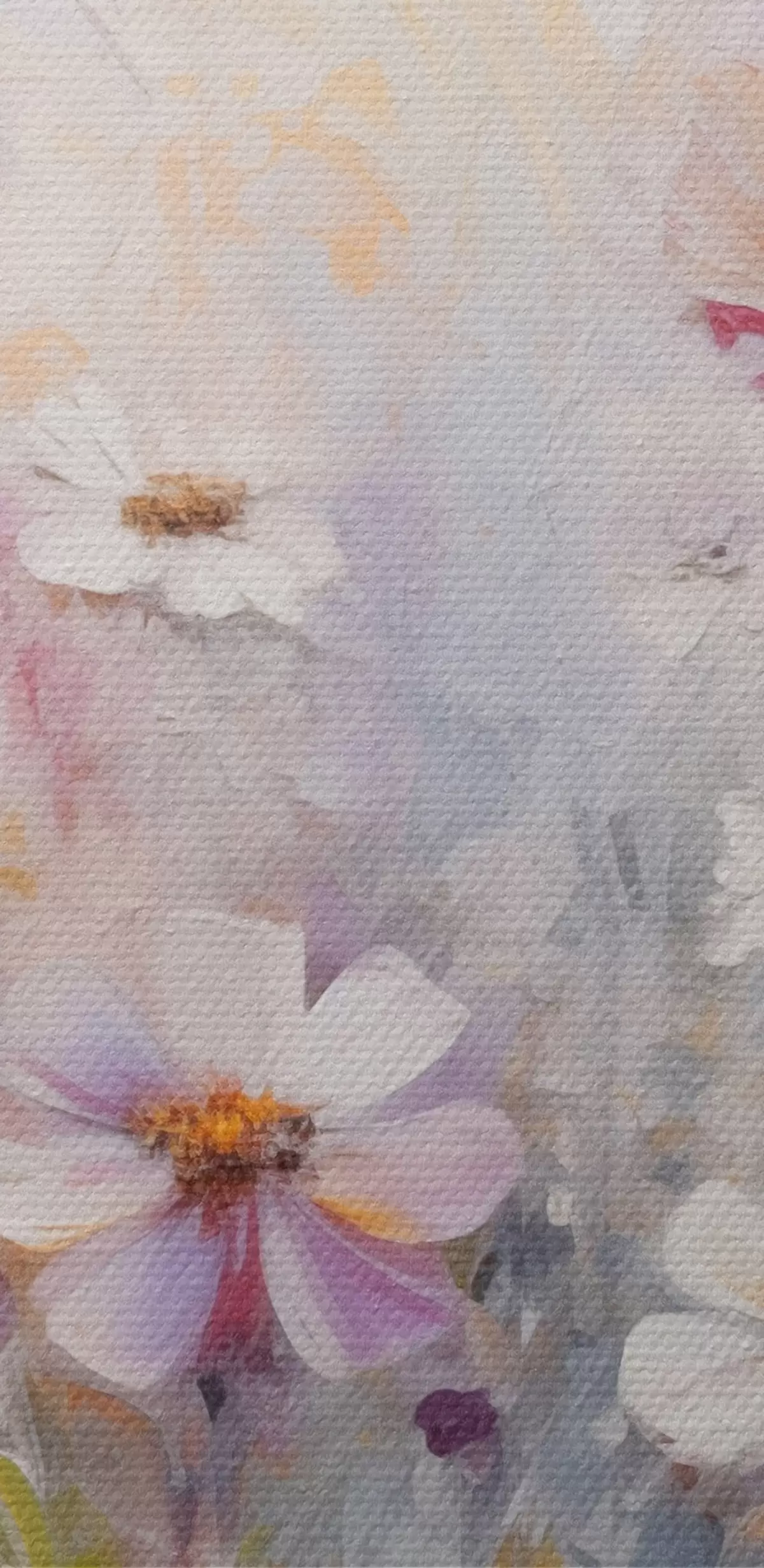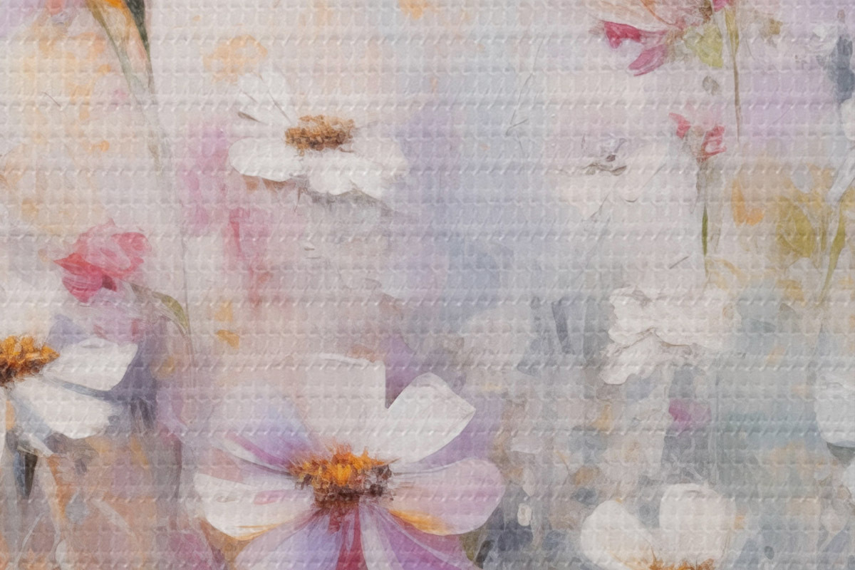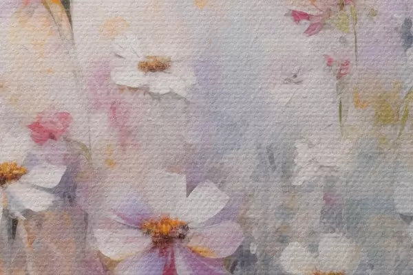 Bild Abstraktes, strukturiertes Feld mit weißen und rosa Blumen, weiche Pastellfarben, zarte Pinselstriche, Blumenwiese Nr r43170