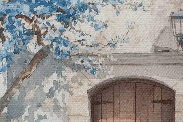 Bild Griechisches Haus mit schönem Baum, Architektur, Aquarellstil Nr r43178