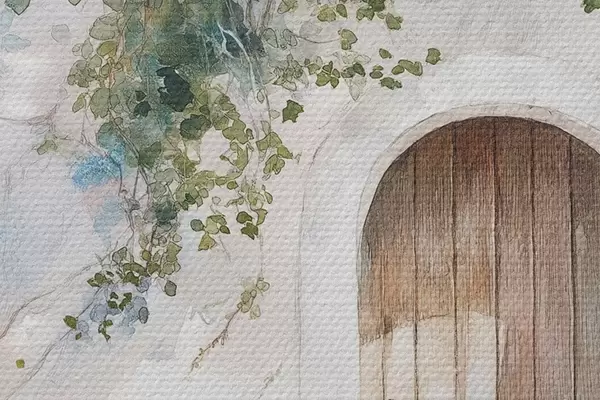Bild Schönes weißes Haus mit blühendem Baum, mediterran, Aquarellstil Nr r43179