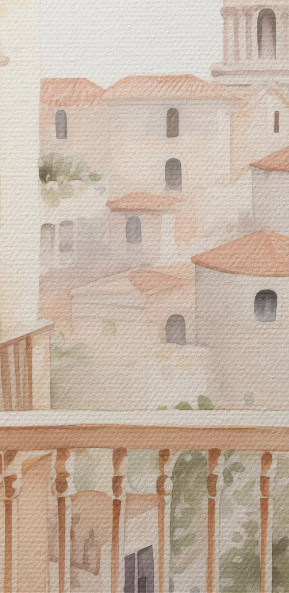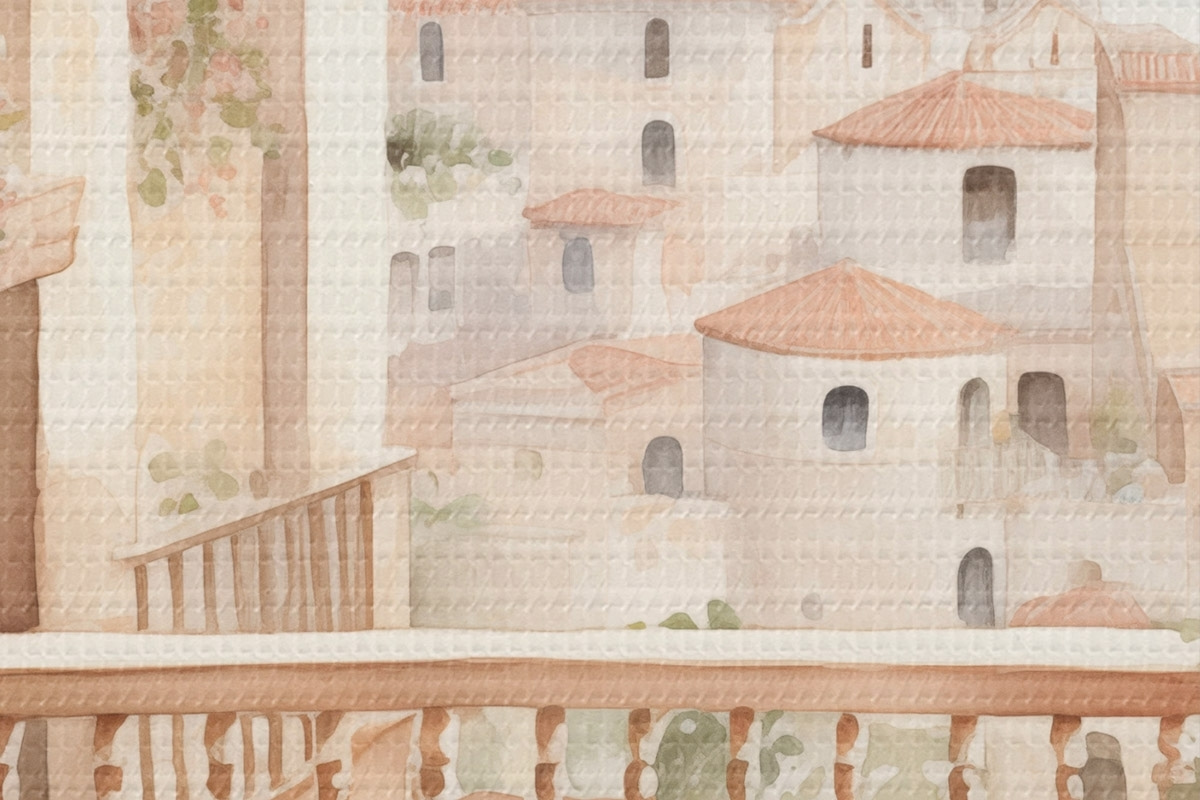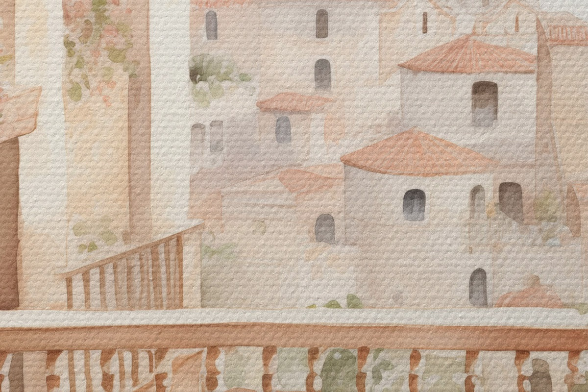 Bild Ästhetischer Sommerbalkon, Spanien, alte Architektur, Blomming, Aquarellstil Nr r43180