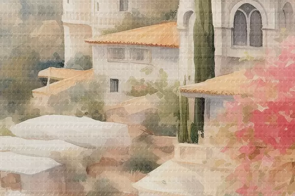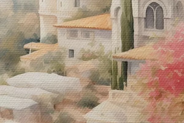 Bild Spanien Sommerlandschaft, mediterrane Architektur, Aquarellstil Nr r43181