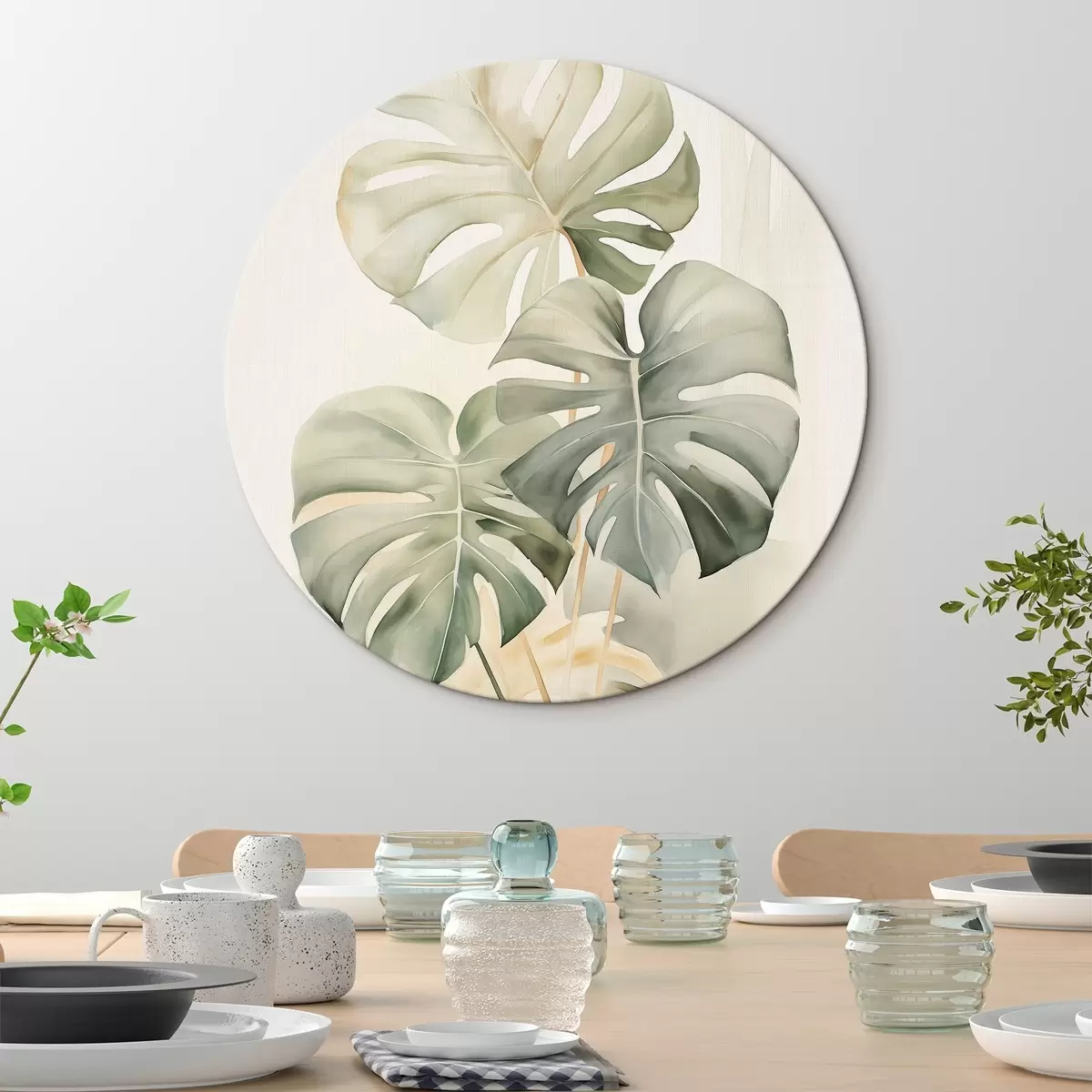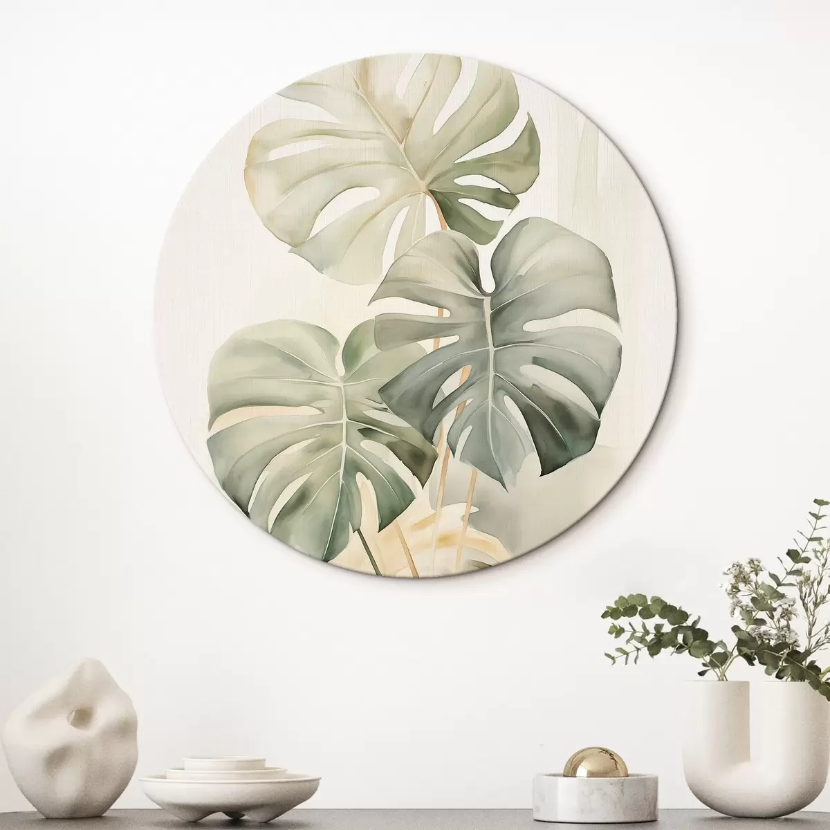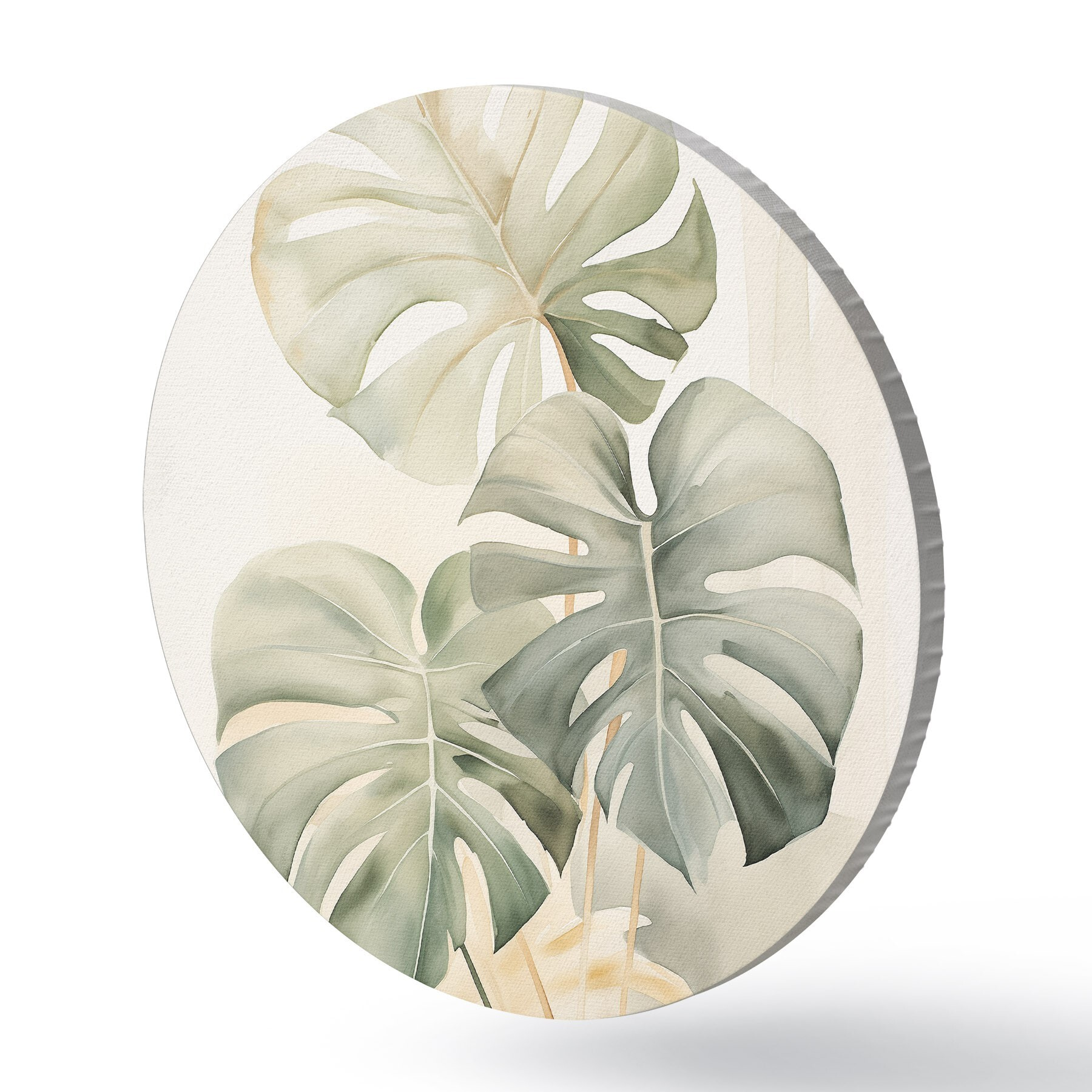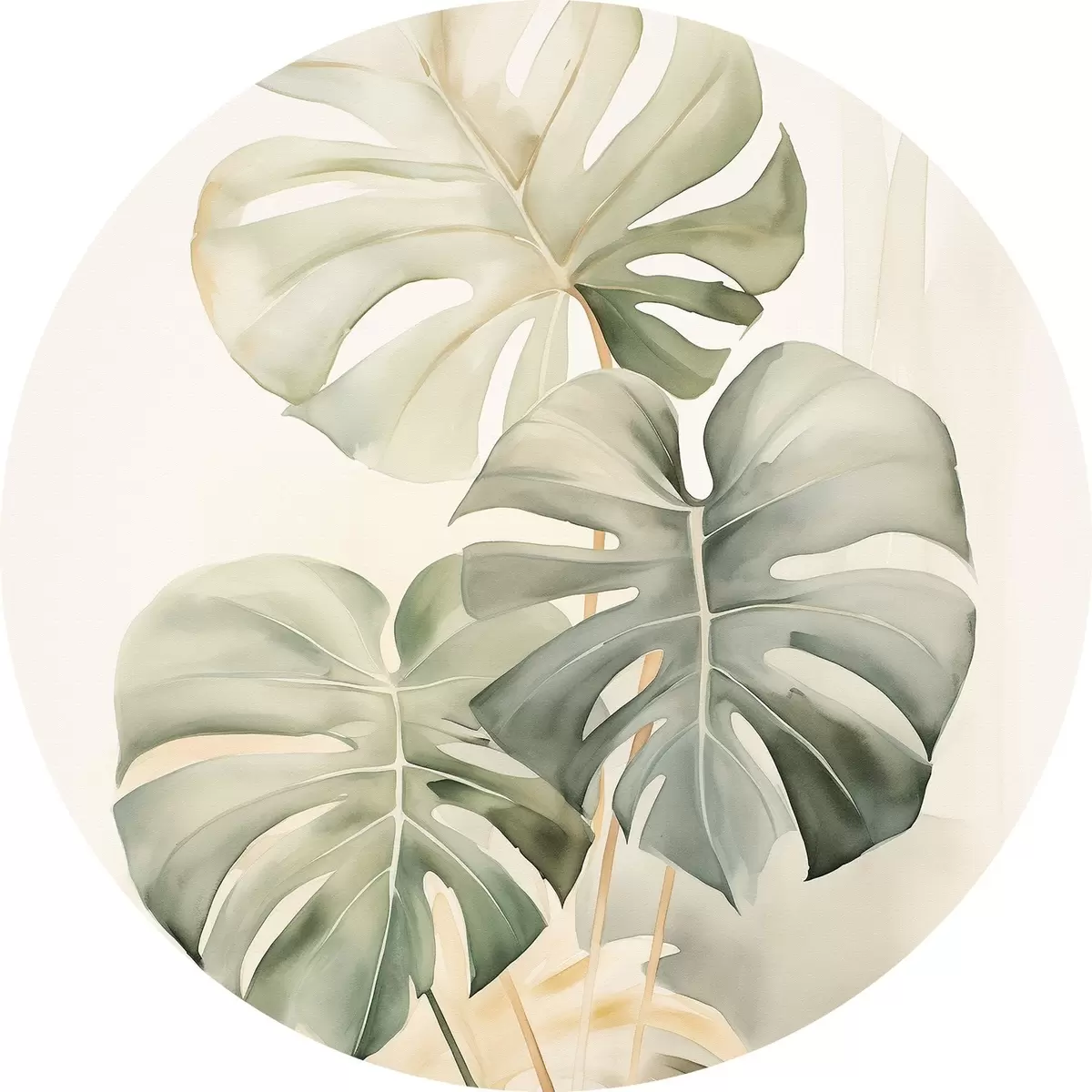 Runde Gemälde Monstera-Blätter in Aquarelltechnik r43210