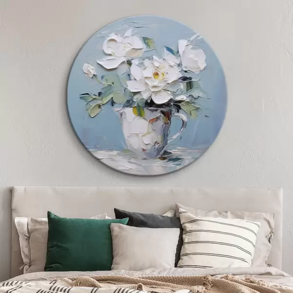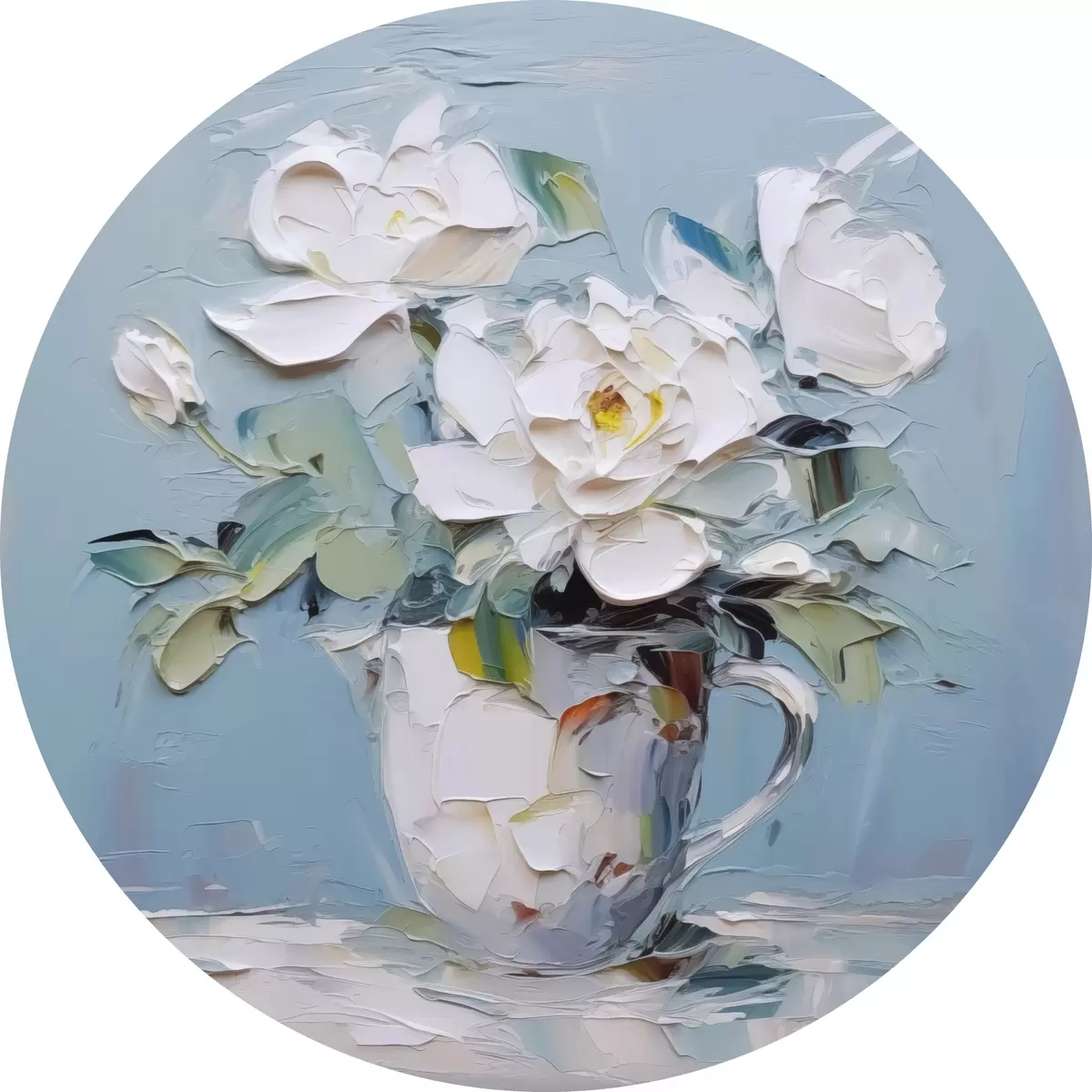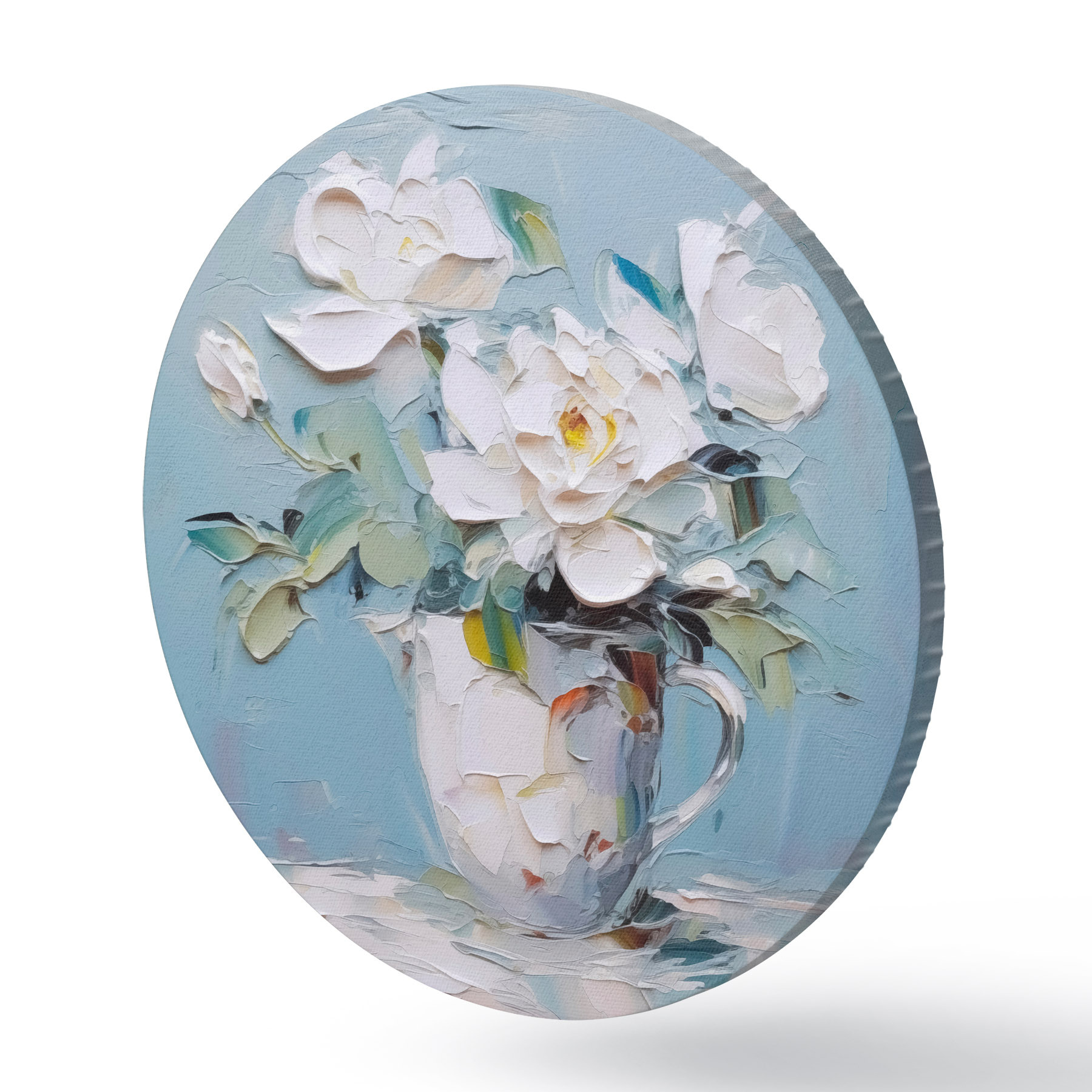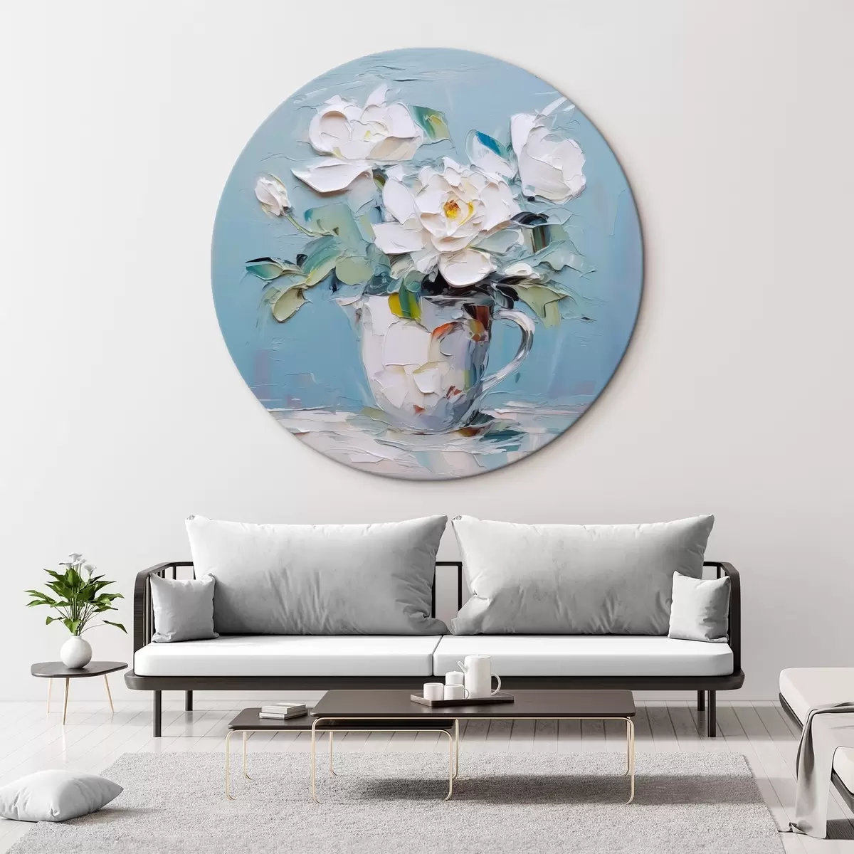 Runde Gemälde Weiße Blumen in einer Tasse Nachahmung Malerei r43225