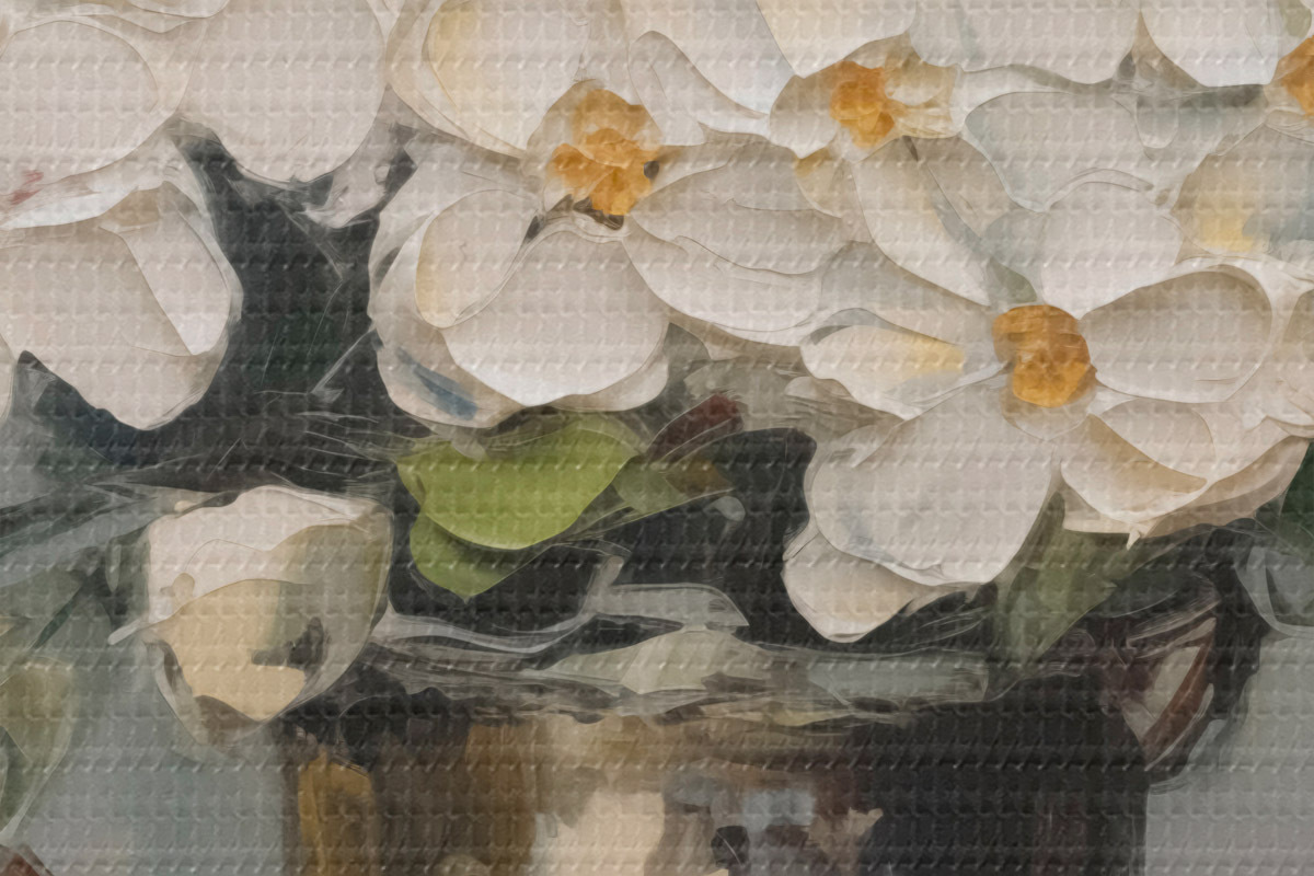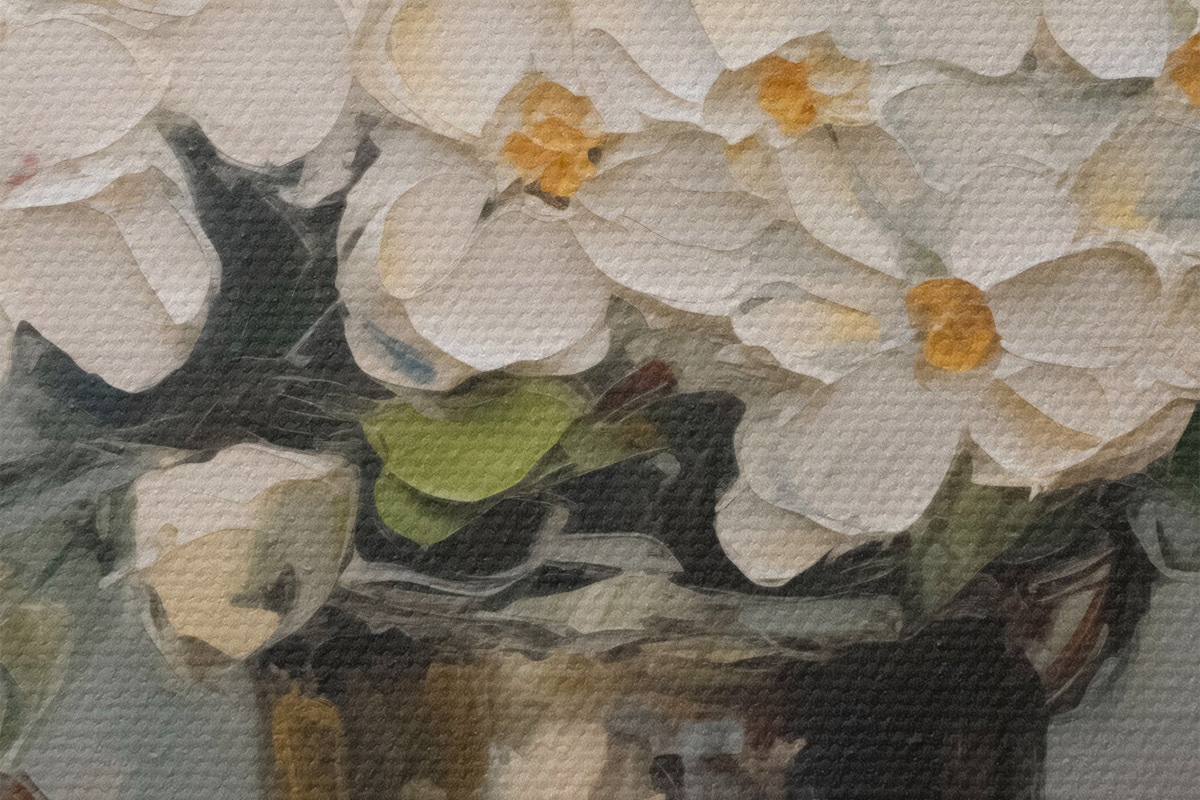Drei Materialtypen stehen zur Verfügung: Economic Canvas - ein dichtes und haltbares Material für den Digitaldruck, identisch mit Malerleinwand, wasserfeste Oberfläche, realistische Wiedergabe von Details, mittelkörniges Material. Premium Canvas - die Textur ähnelt der einer Malerleinwand (verwobene kleine Fäden). Weiche, detaillierte Wiedergabe des Bildes auf einer matten Oberfläche. Eco-Premium - hochwertiges Gewebe aus 100% Baumwolle. Dank der natürlichen Baumwollfasern ist das Material langlebig und verschleißfest. Hervorragende Farbwiedergabe und Detailtreue.