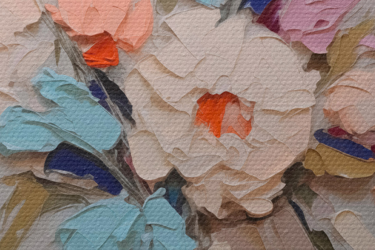Drei Materialtypen stehen zur Verfügung: Economic Canvas - ein dichtes und haltbares Material für den Digitaldruck, identisch mit Malerleinwand, wasserfeste Oberfläche, realistische Wiedergabe von Details, mittelkörniges Material. Premium Canvas - die Textur ähnelt der einer Malerleinwand (verwobene kleine Fäden). Weiche, detaillierte Wiedergabe des Bildes auf einer matten Oberfläche. Eco-Premium - hochwertiges Gewebe aus 100% Baumwolle. Dank der natürlichen Baumwollfasern ist das Material langlebig und verschleißfest. Hervorragende Farbwiedergabe und Detailtreue.
