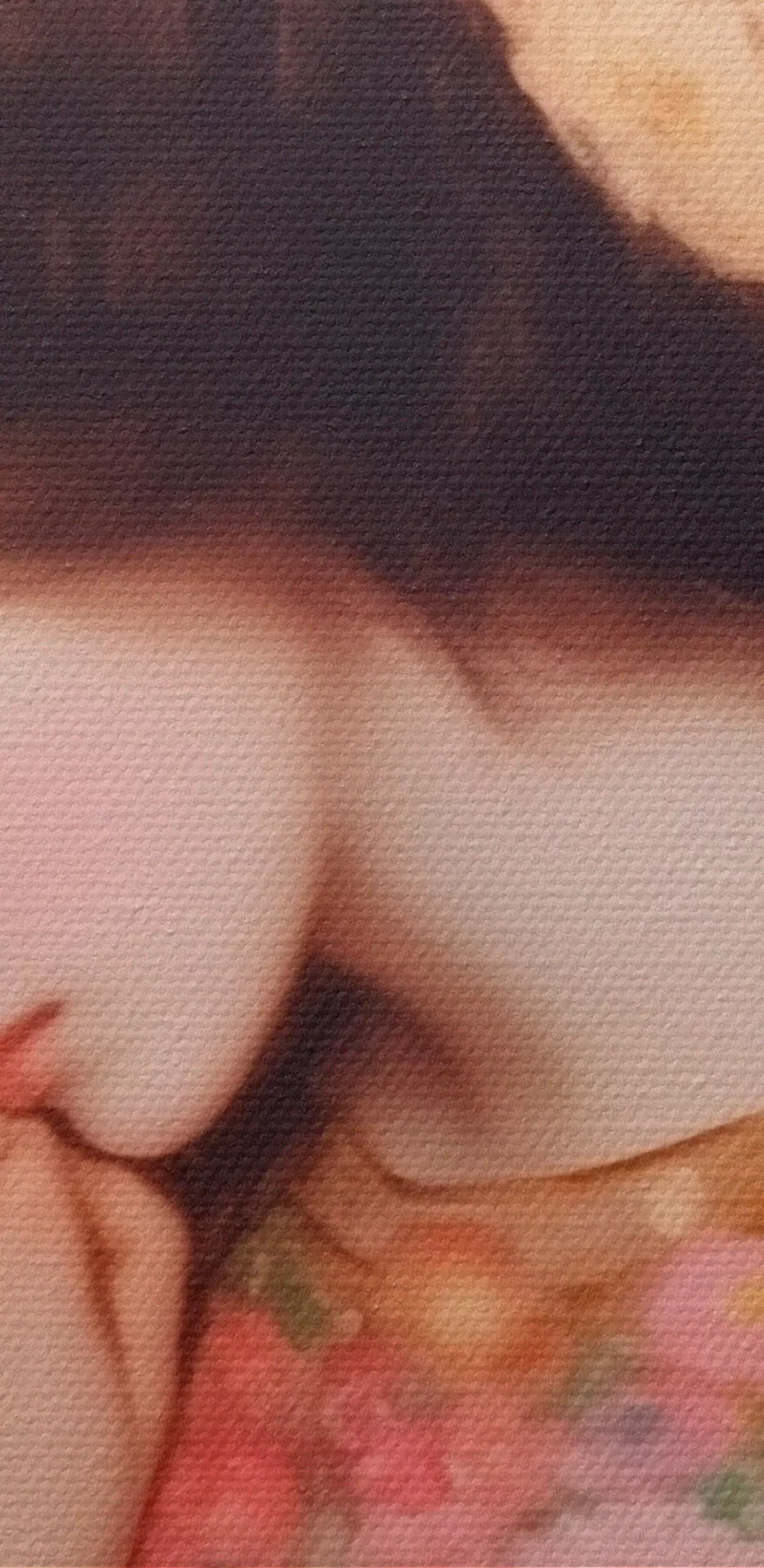 Um die Leinwand auf Keilrahmen zu spannen, ohne das Bild zu beschädigen, verwenden wir ein gespiegeltes Bild.