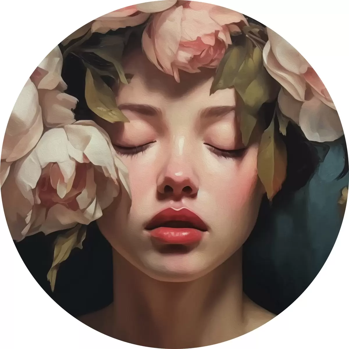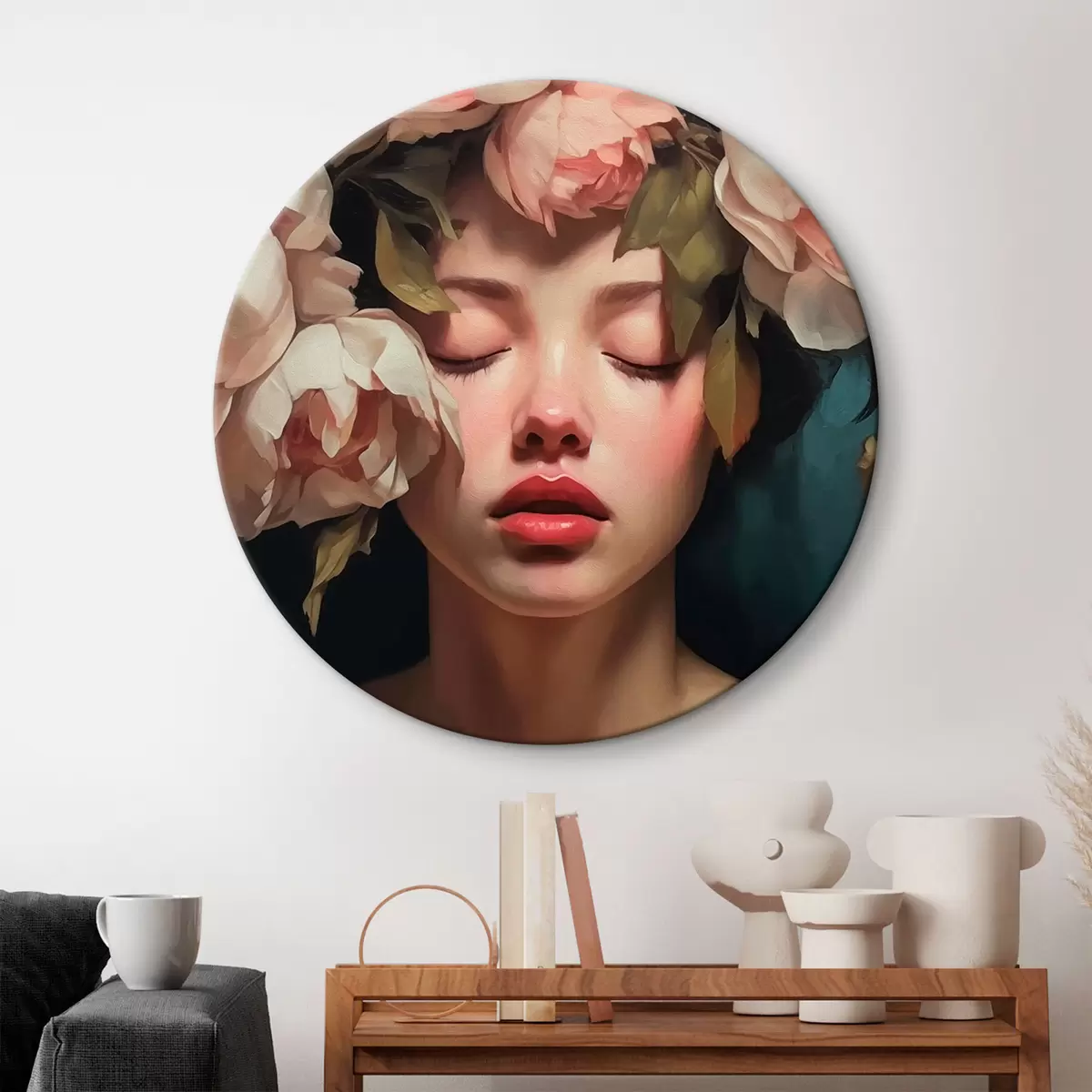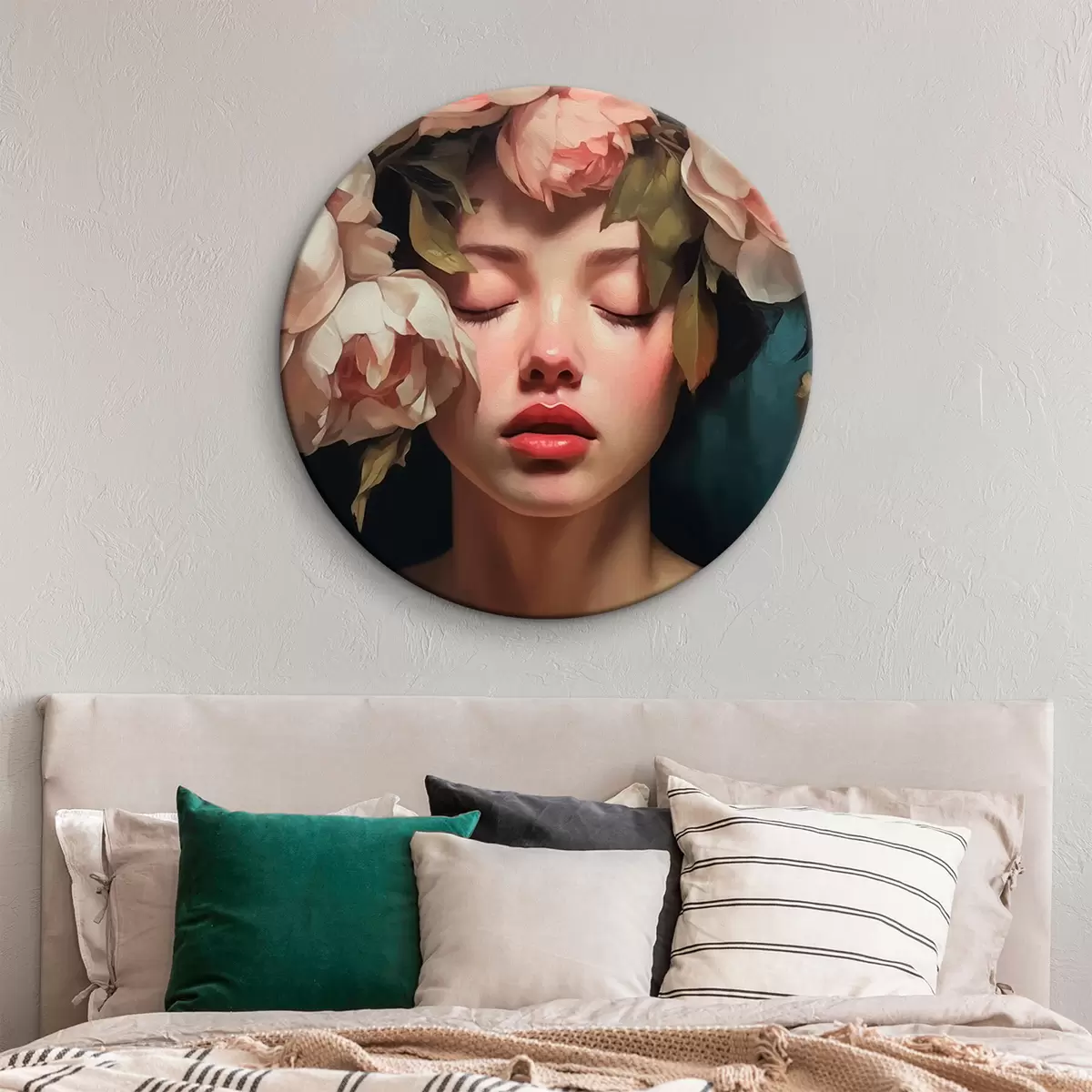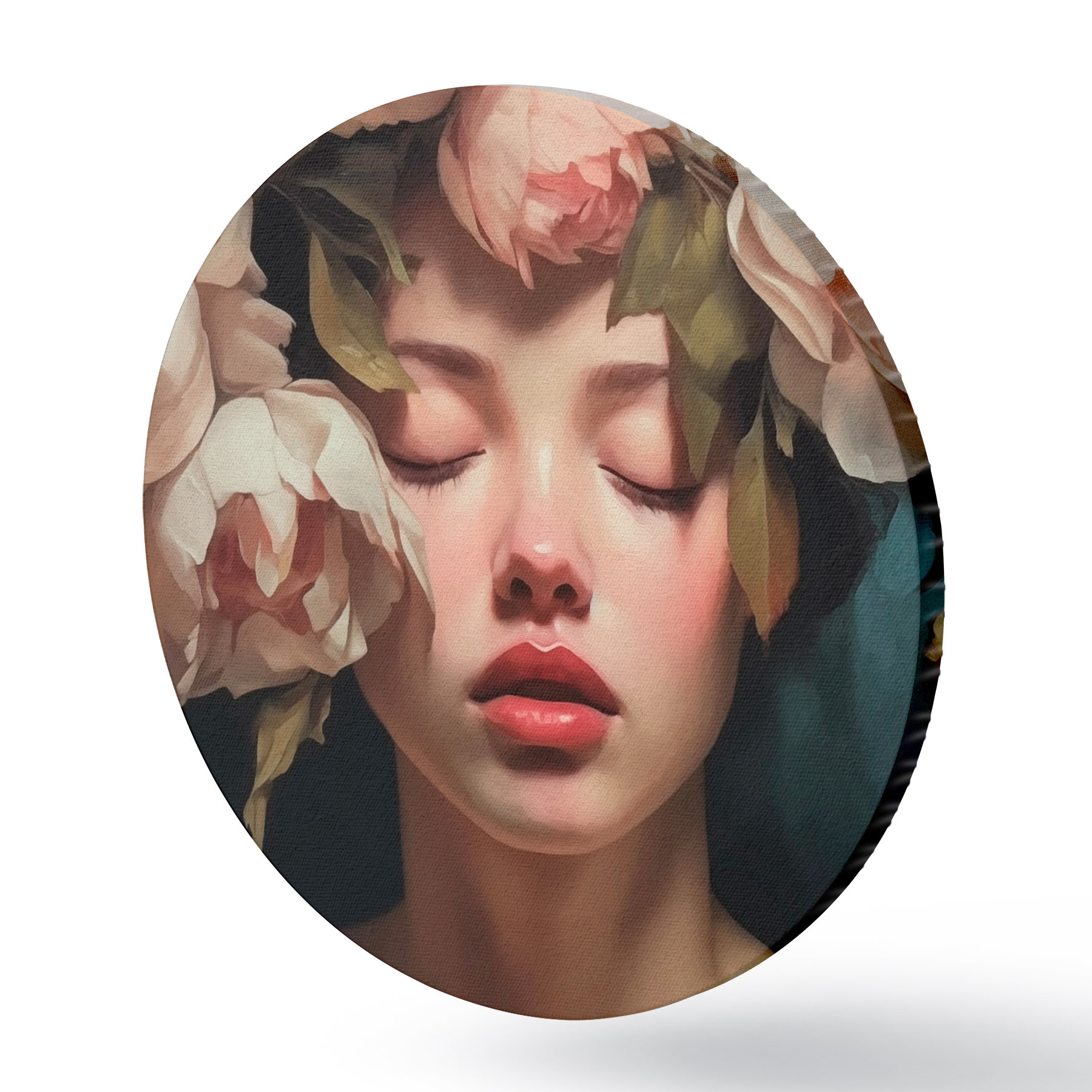 Runde Gemälde Mädchen mit Blumenkranz r43250