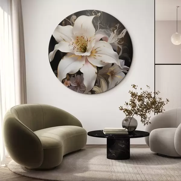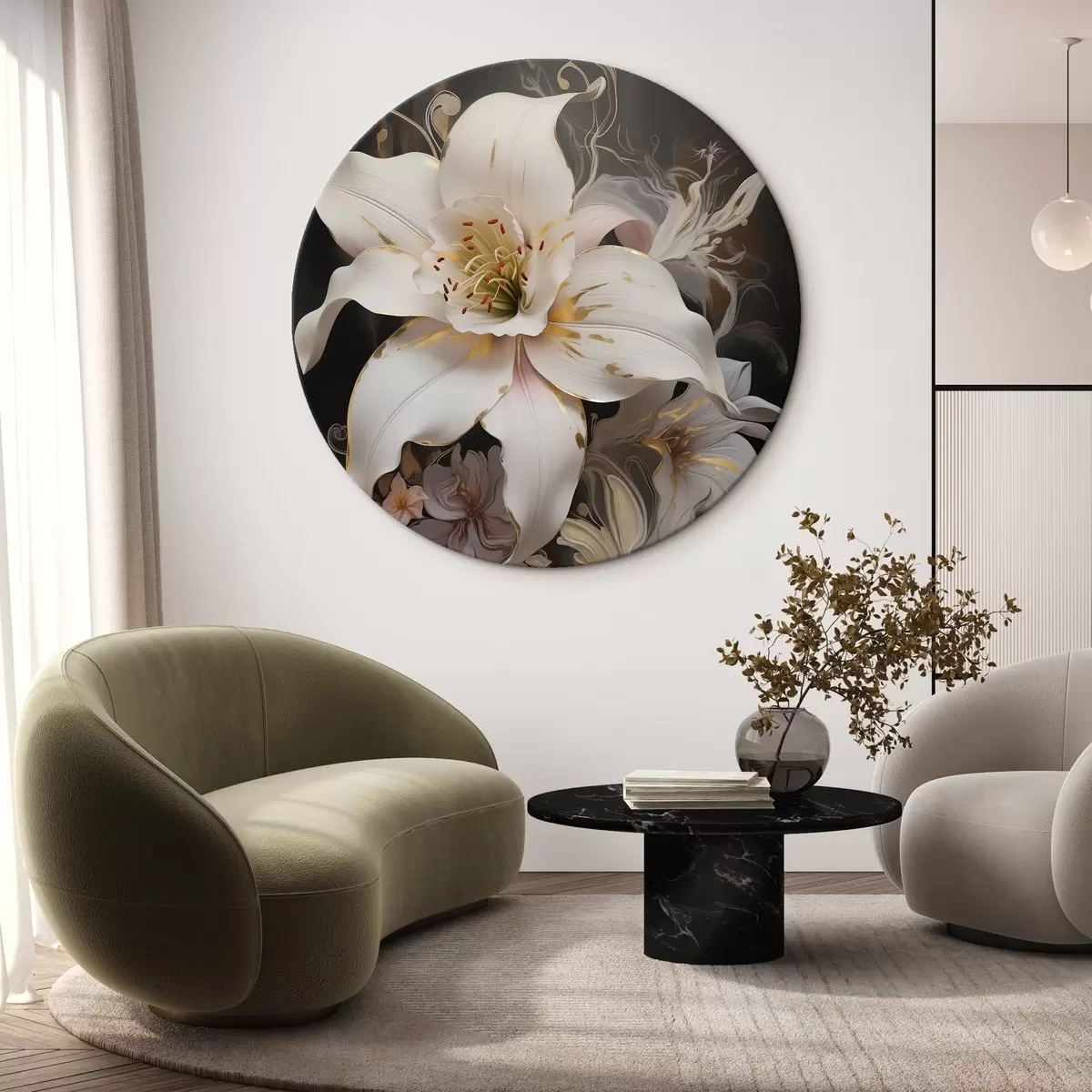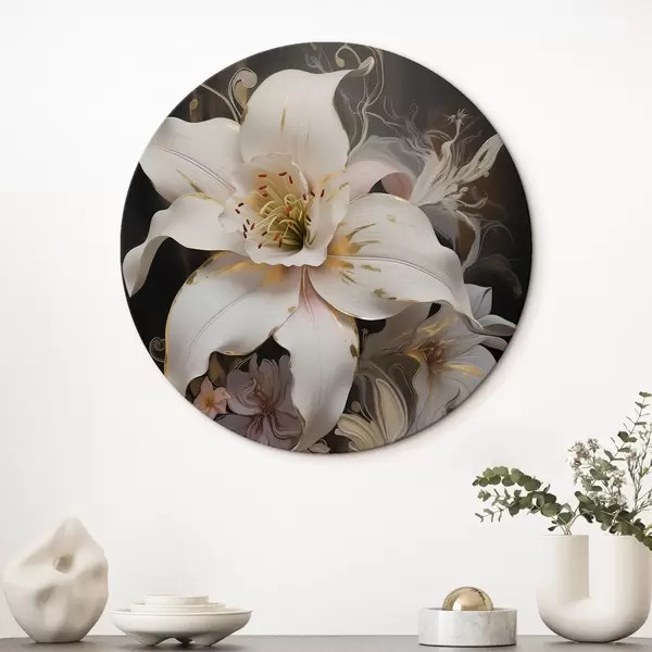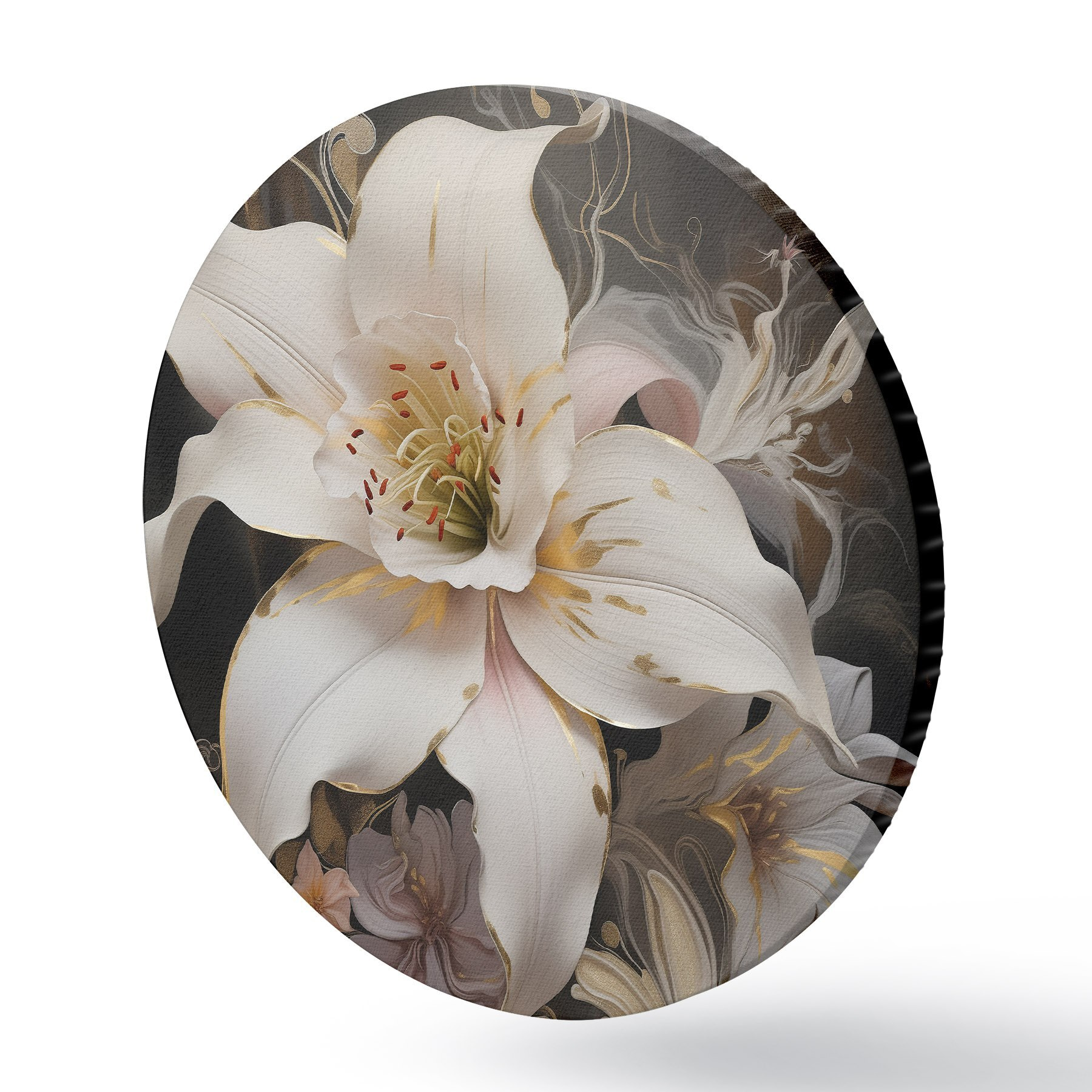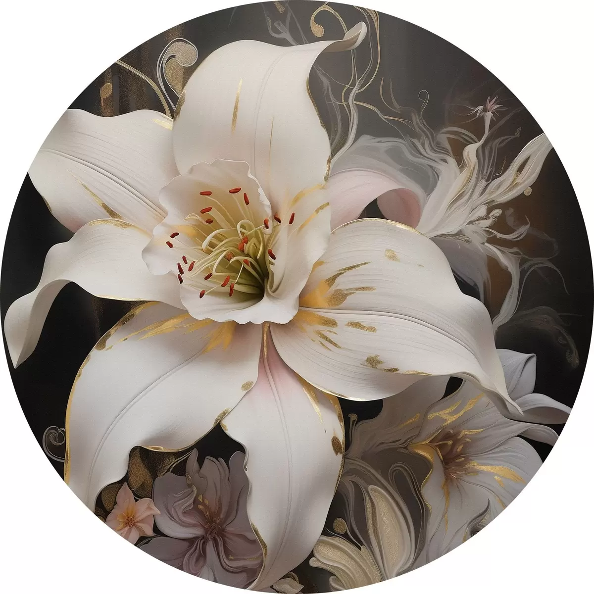 Runde Gemälde Nahaufnahme abstrakte Lilie Blume auf einem dunklen Hintergrund r43254