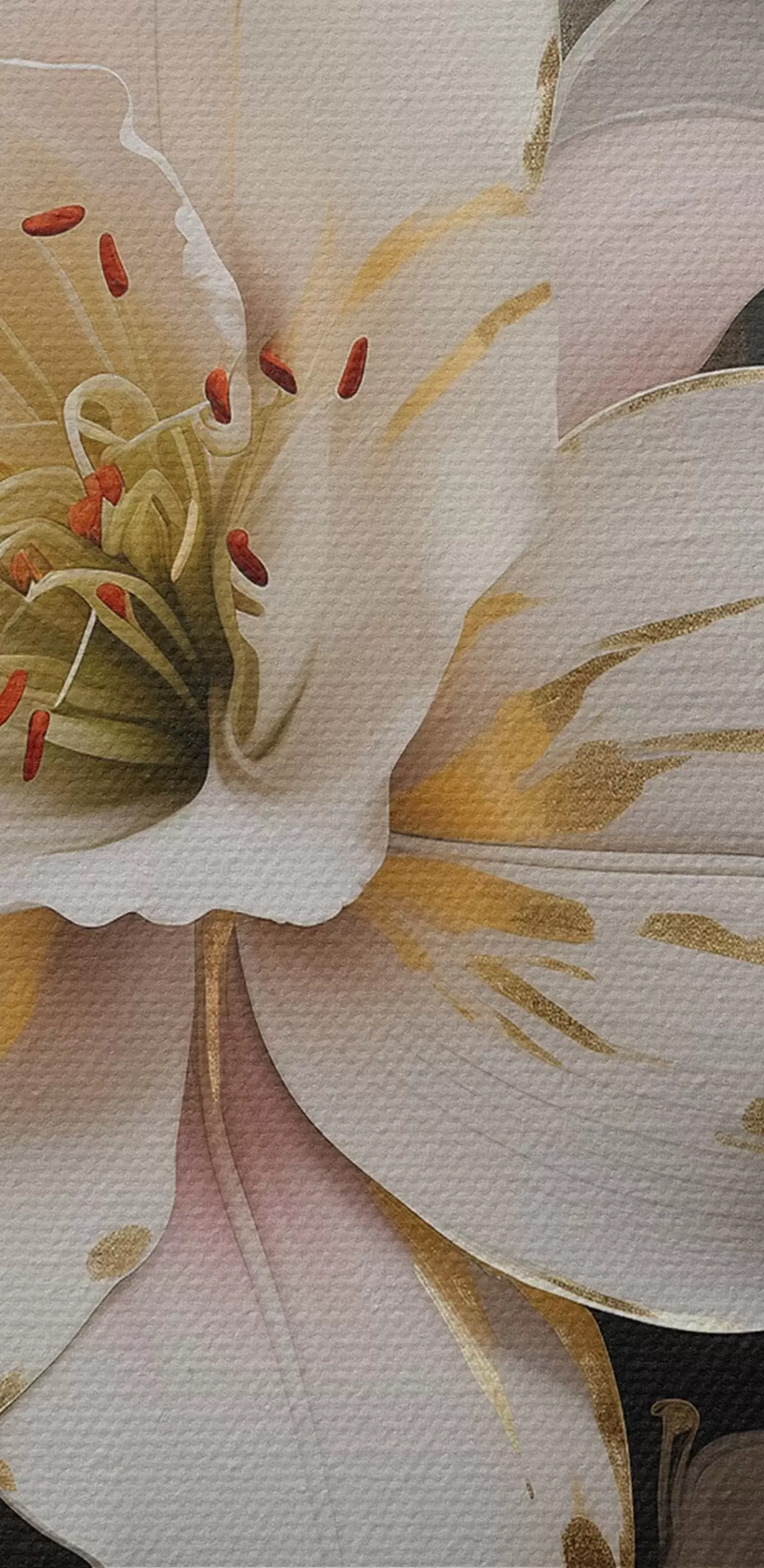 Drei Materialtypen stehen zur Verfügung: Economic Canvas - ein dichtes und haltbares Material für den Digitaldruck, identisch mit Malerleinwand, wasserfeste Oberfläche, realistische Wiedergabe von Details, mittelkörniges Material. Premium Canvas - die Textur ähnelt der einer Malerleinwand (verwobene kleine Fäden). Weiche, detaillierte Wiedergabe des Bildes auf einer matten Oberfläche. Eco-Premium - hochwertiges Gewebe aus 100% Baumwolle. Dank der natürlichen Baumwollfasern ist das Material langlebig und verschleißfest. Hervorragende Farbwiedergabe und Detailtreue.