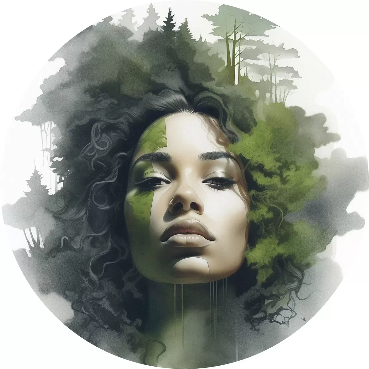 Runde Gemälde Menschen, abstraktes Bild eines Waldes r43260