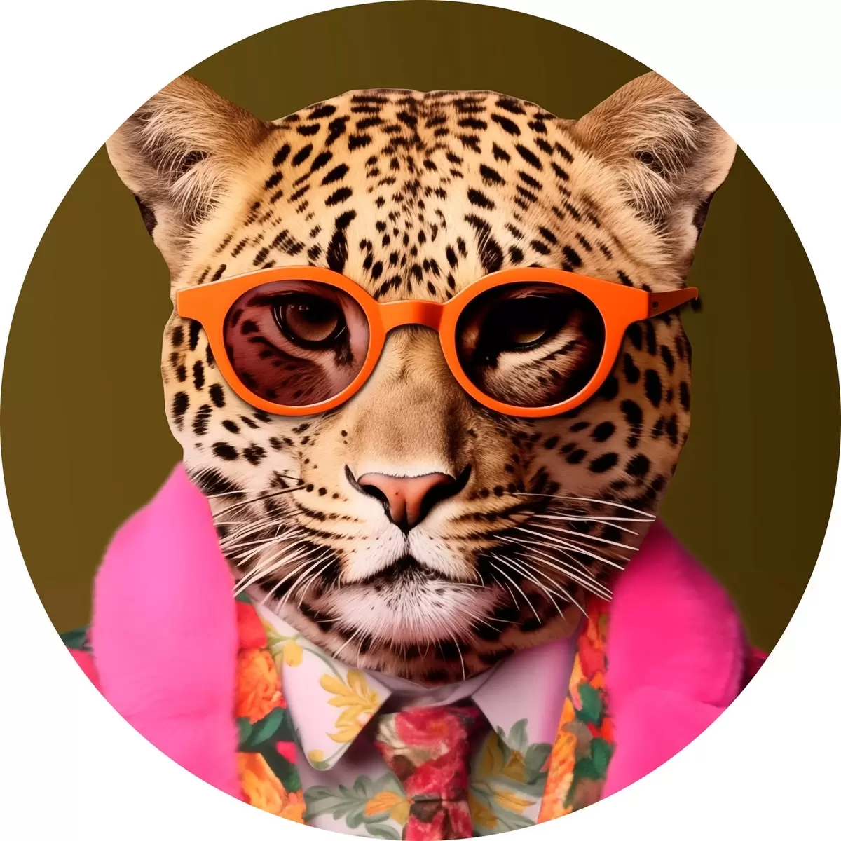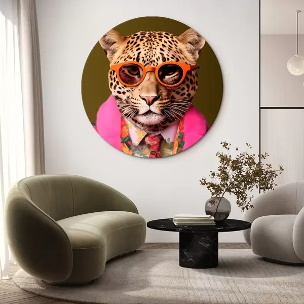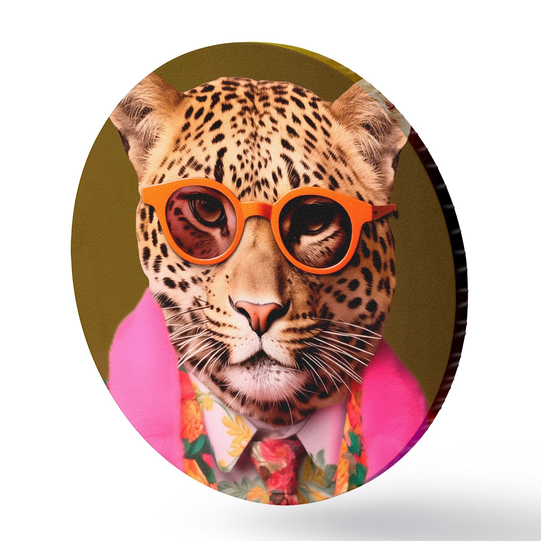 Runde Gemälde Stilvoller Leopard im Blumenkostüm r43267