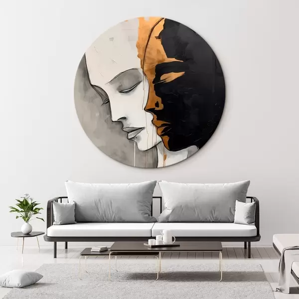 Runde Gemälde Kontrastierende Silhouetten mit abstrakten Akzenten r43280