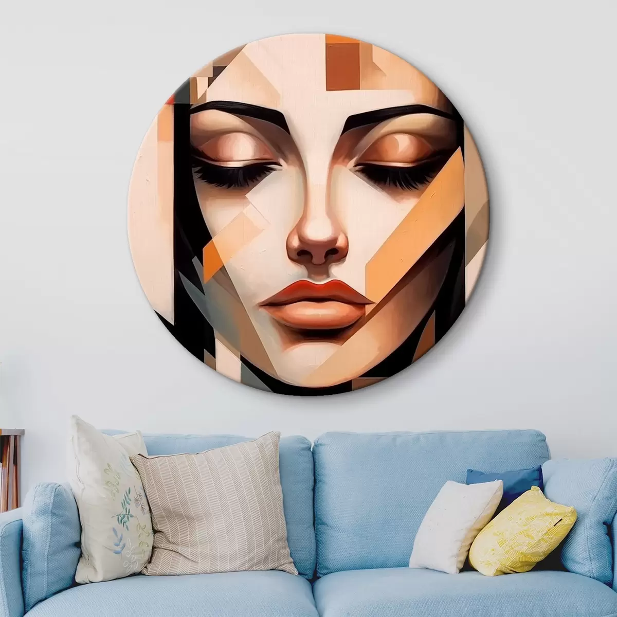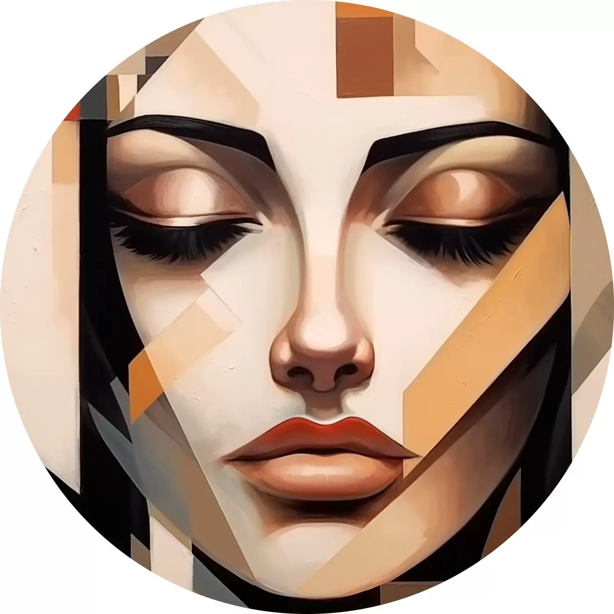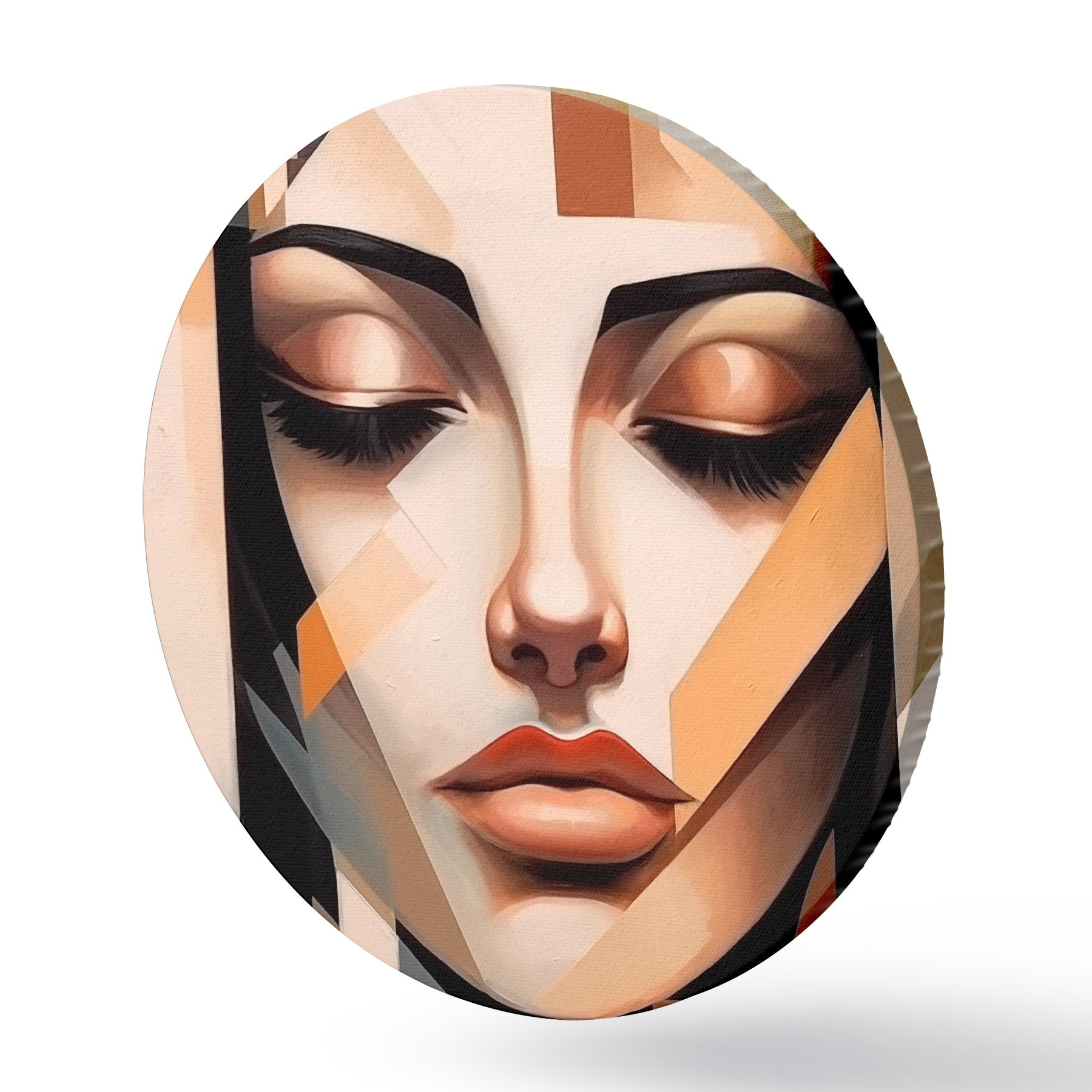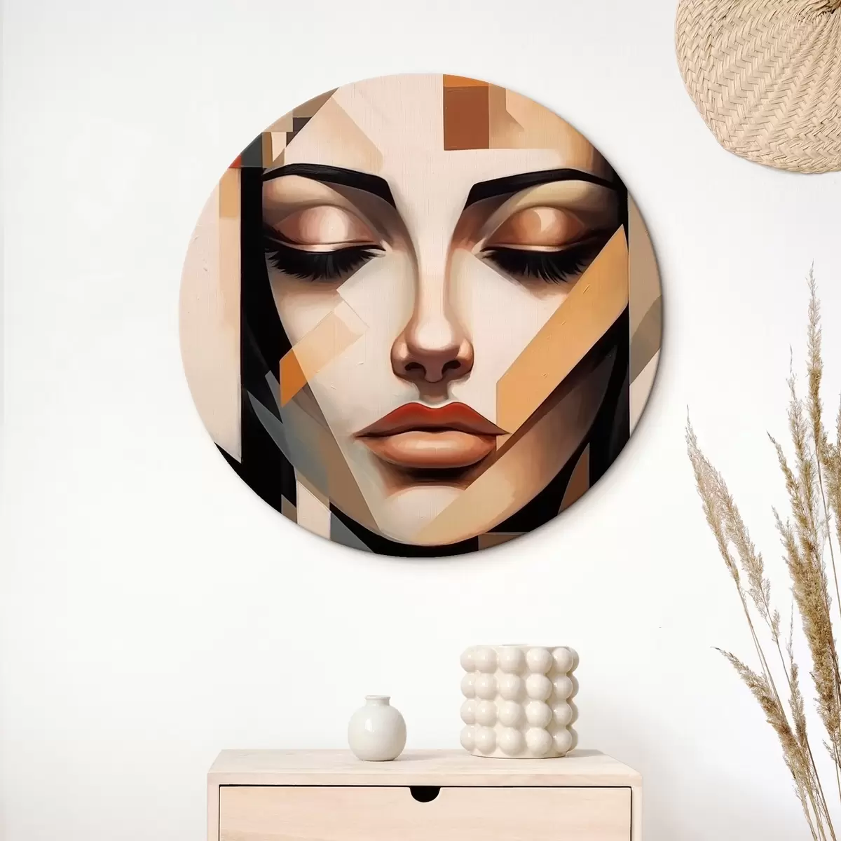 Runde Gemälde Geometrisches Porträt in warmen Farben r43281