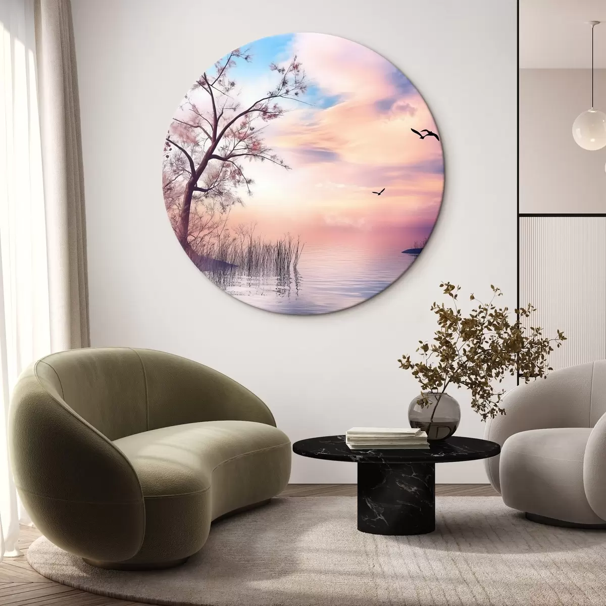 Runde Gemälde Morgendämmerung auf dem See r43287