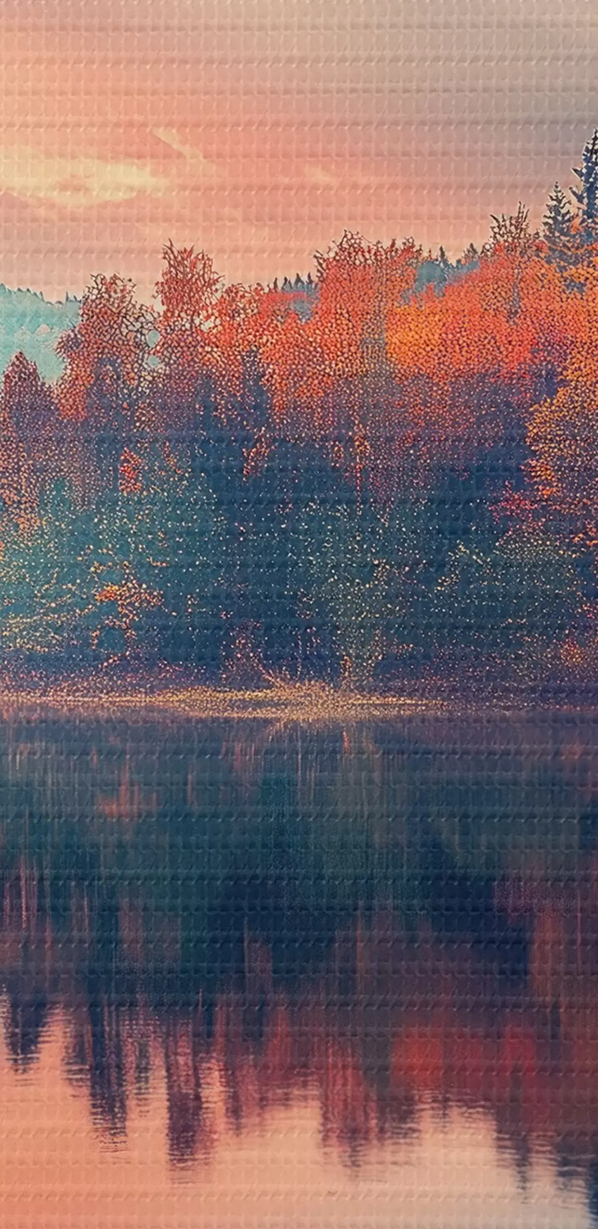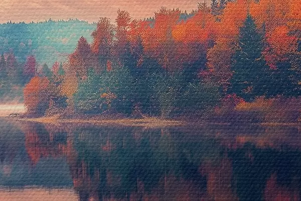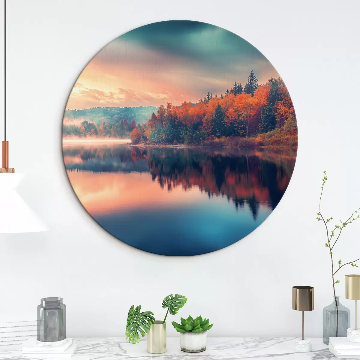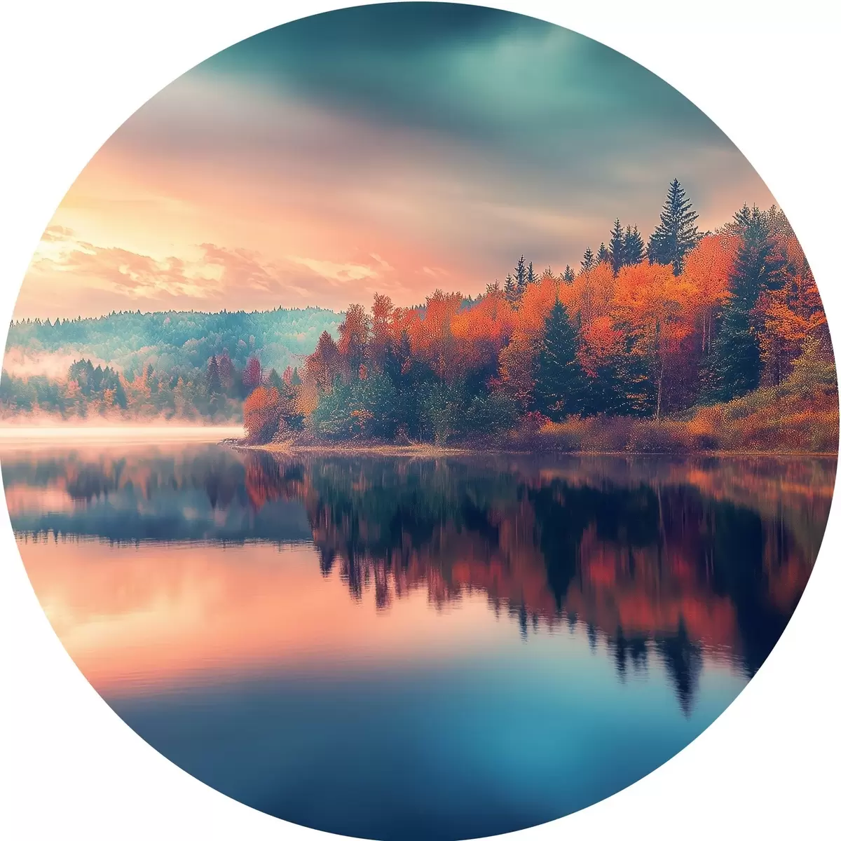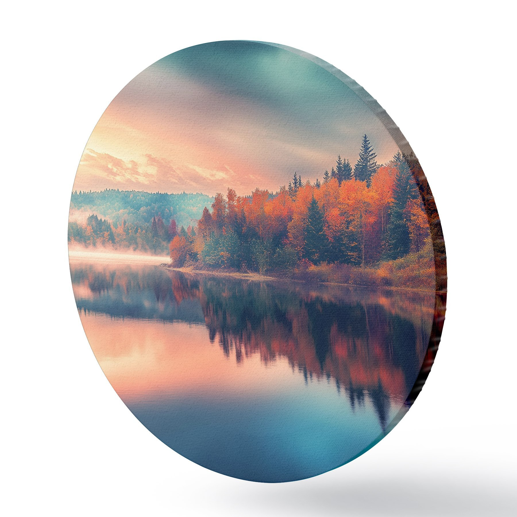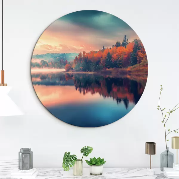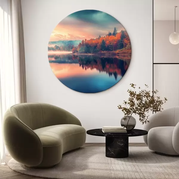 Runde Gemälde Morgendämmerung auf dem See im Herbst r43290