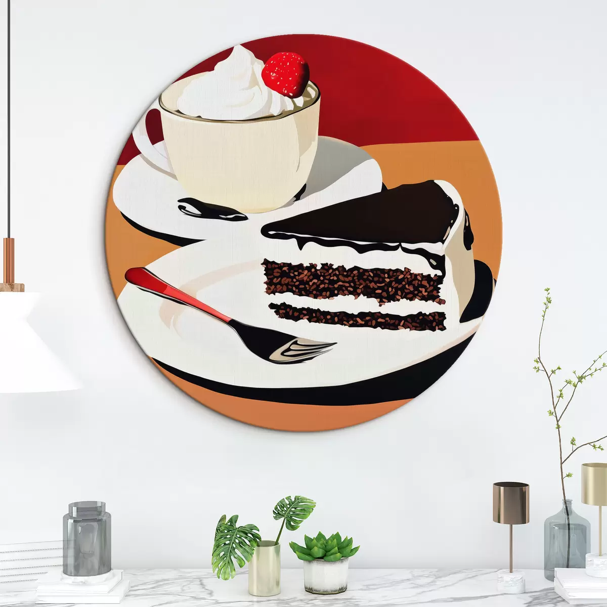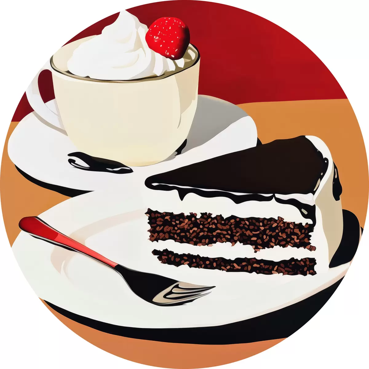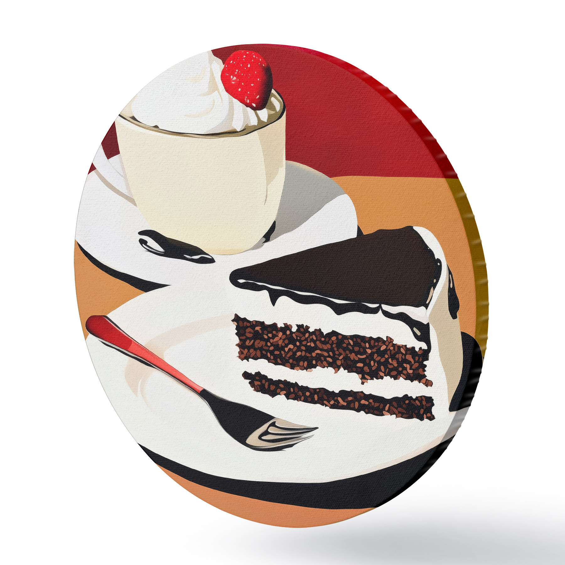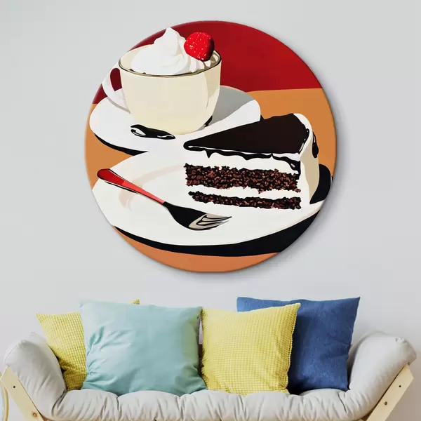 Runde Gemälde Eine Tasse Kaffee und ein Stück Kuchen r43293