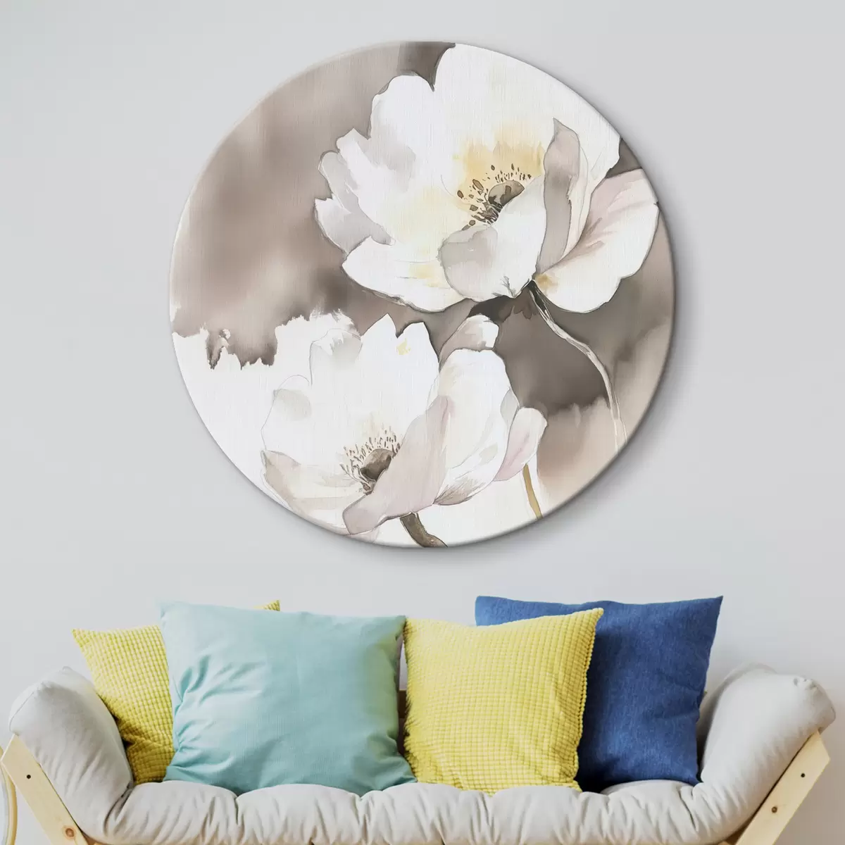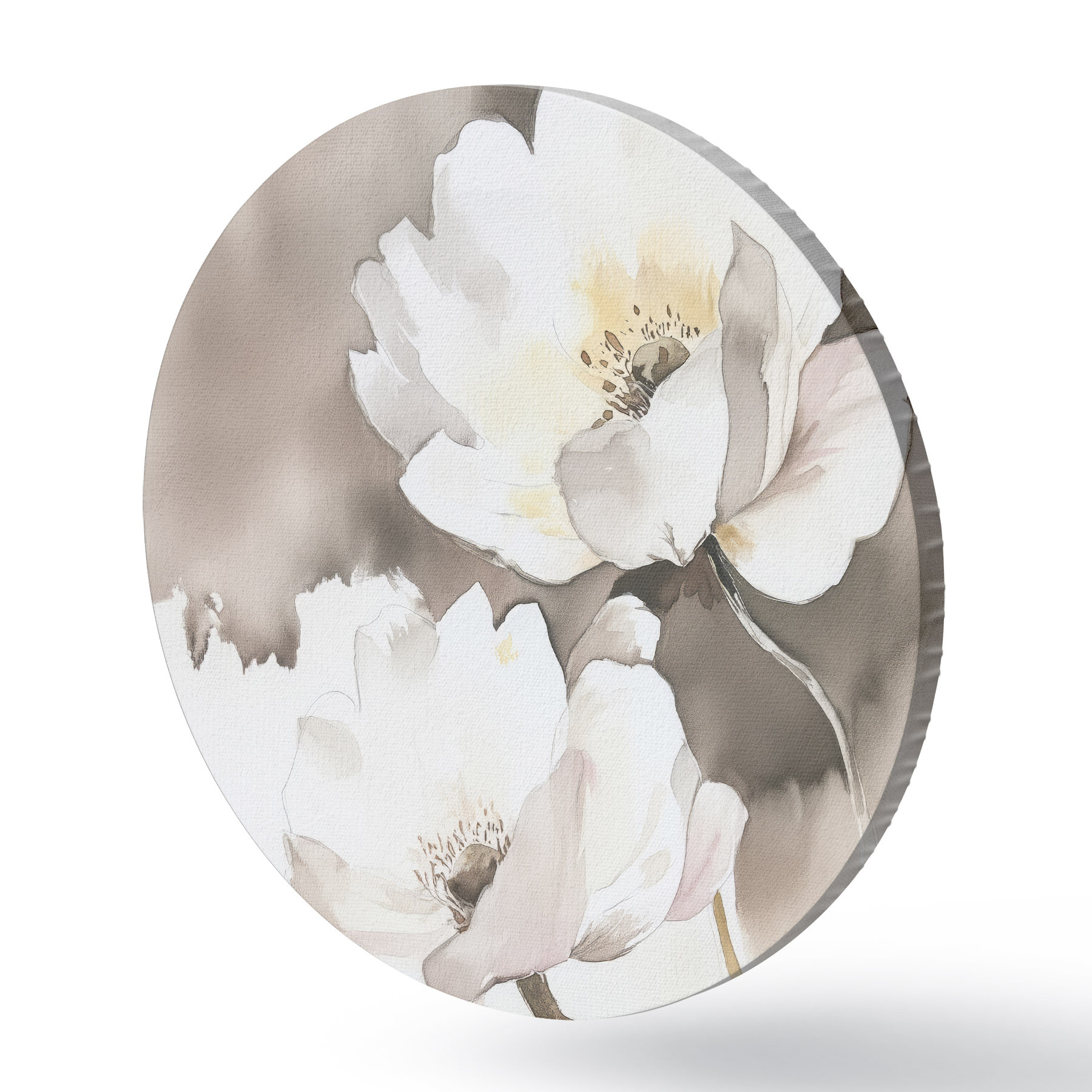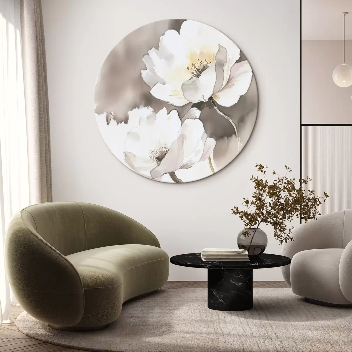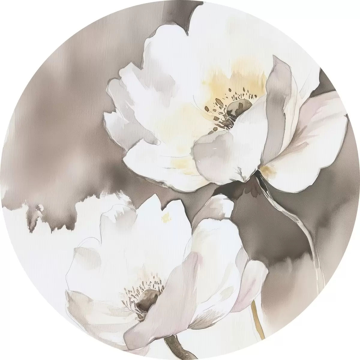 Runde Gemälde Weiße Blumen auf braunem Hintergrund im Stil der Aquarellmalerei r43297