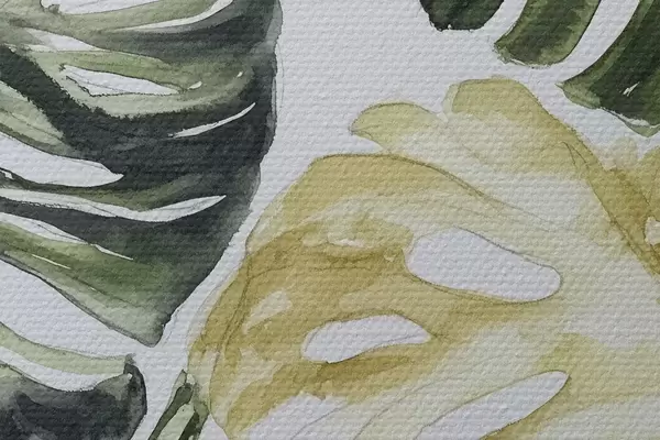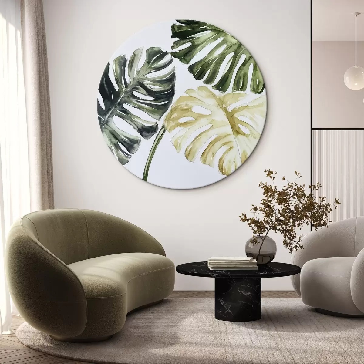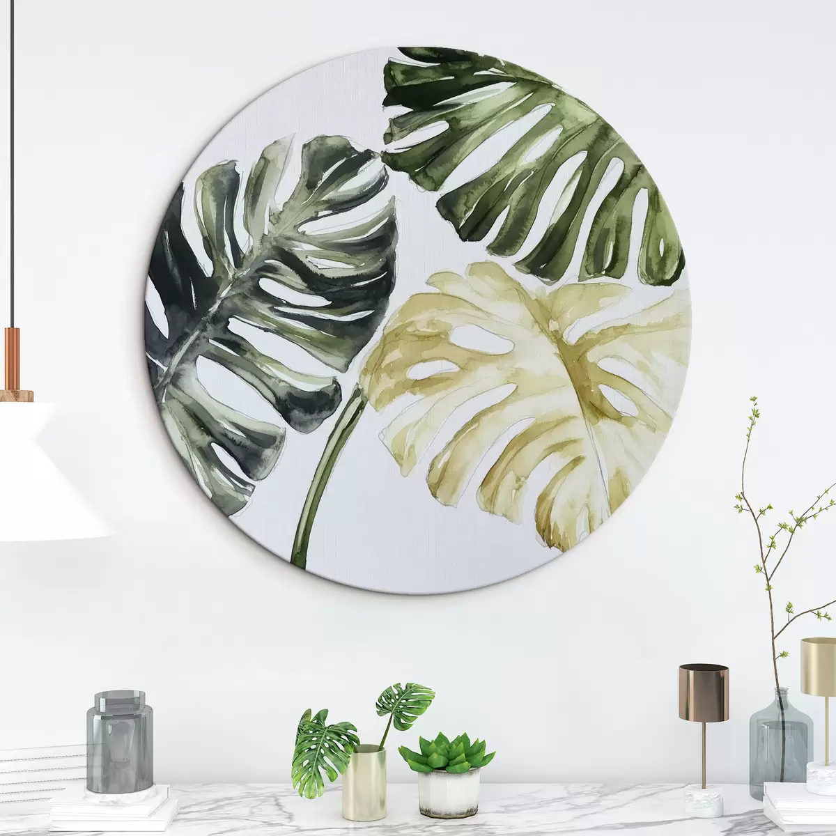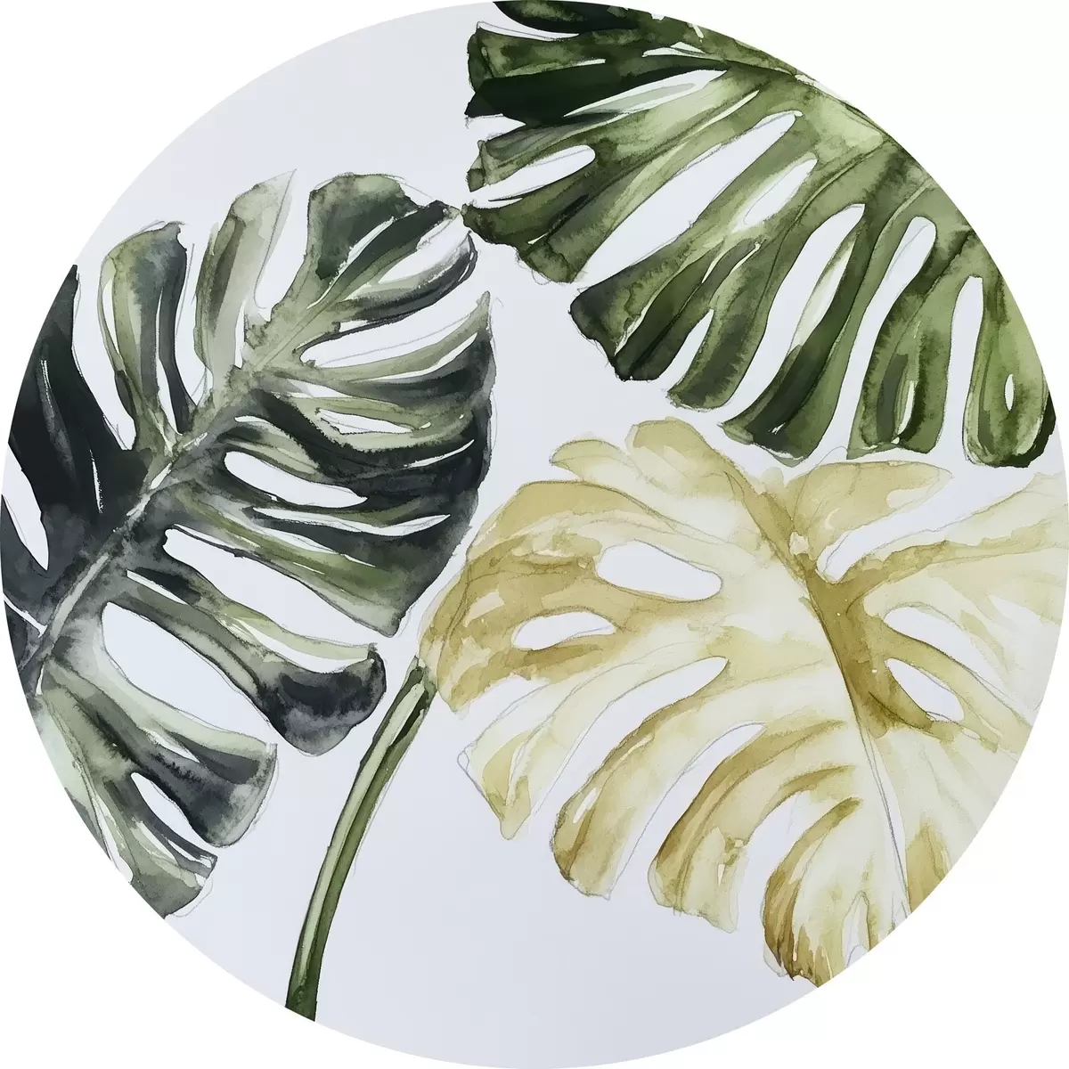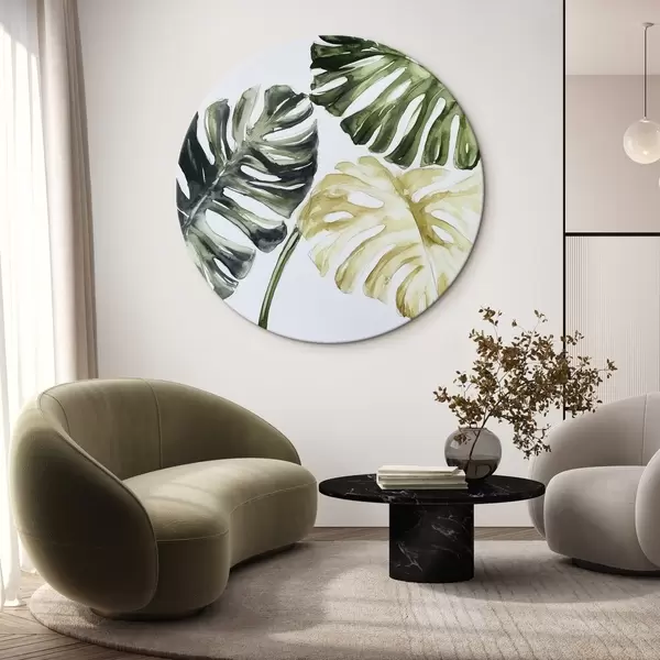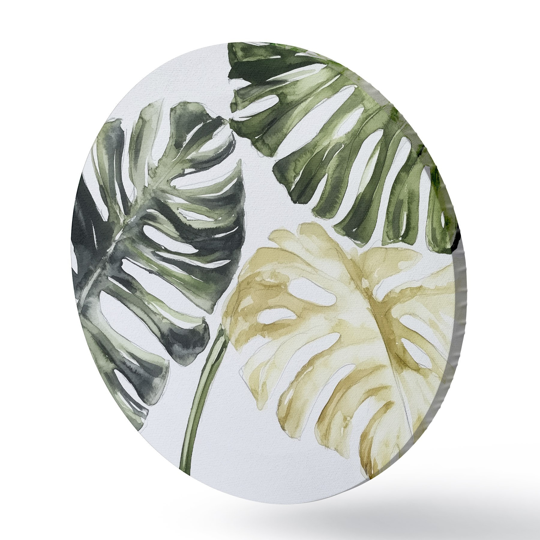 Runde Gemälde Tropische Blätter auf weißem Hintergrund r43304