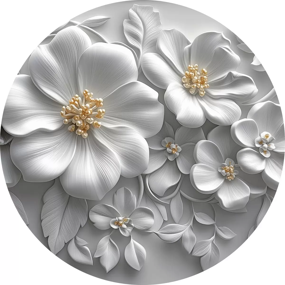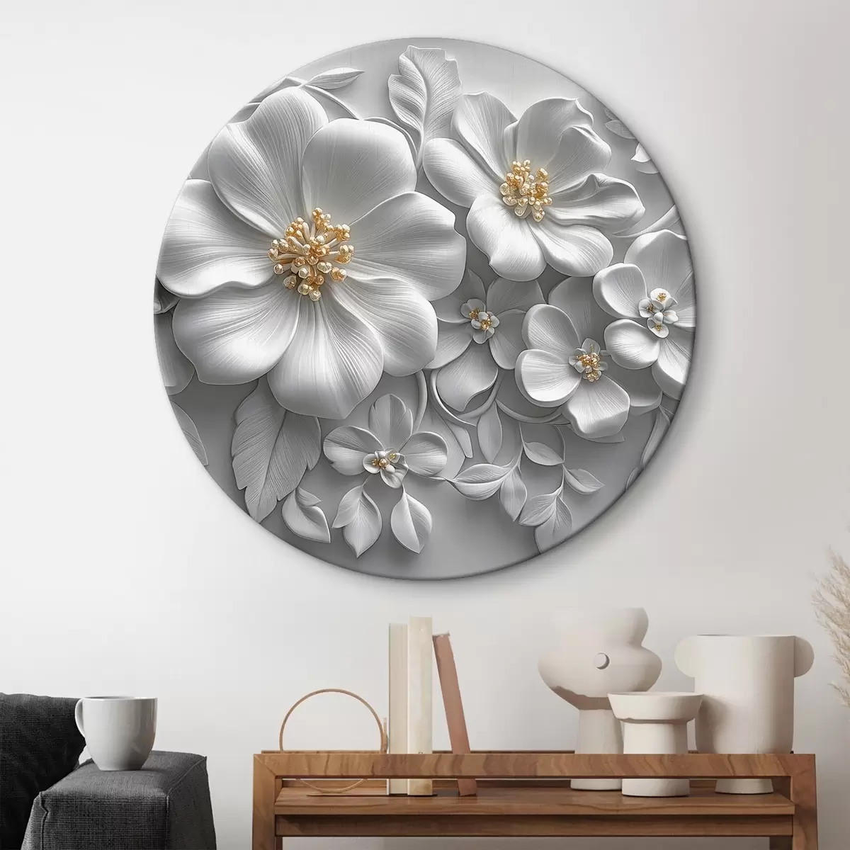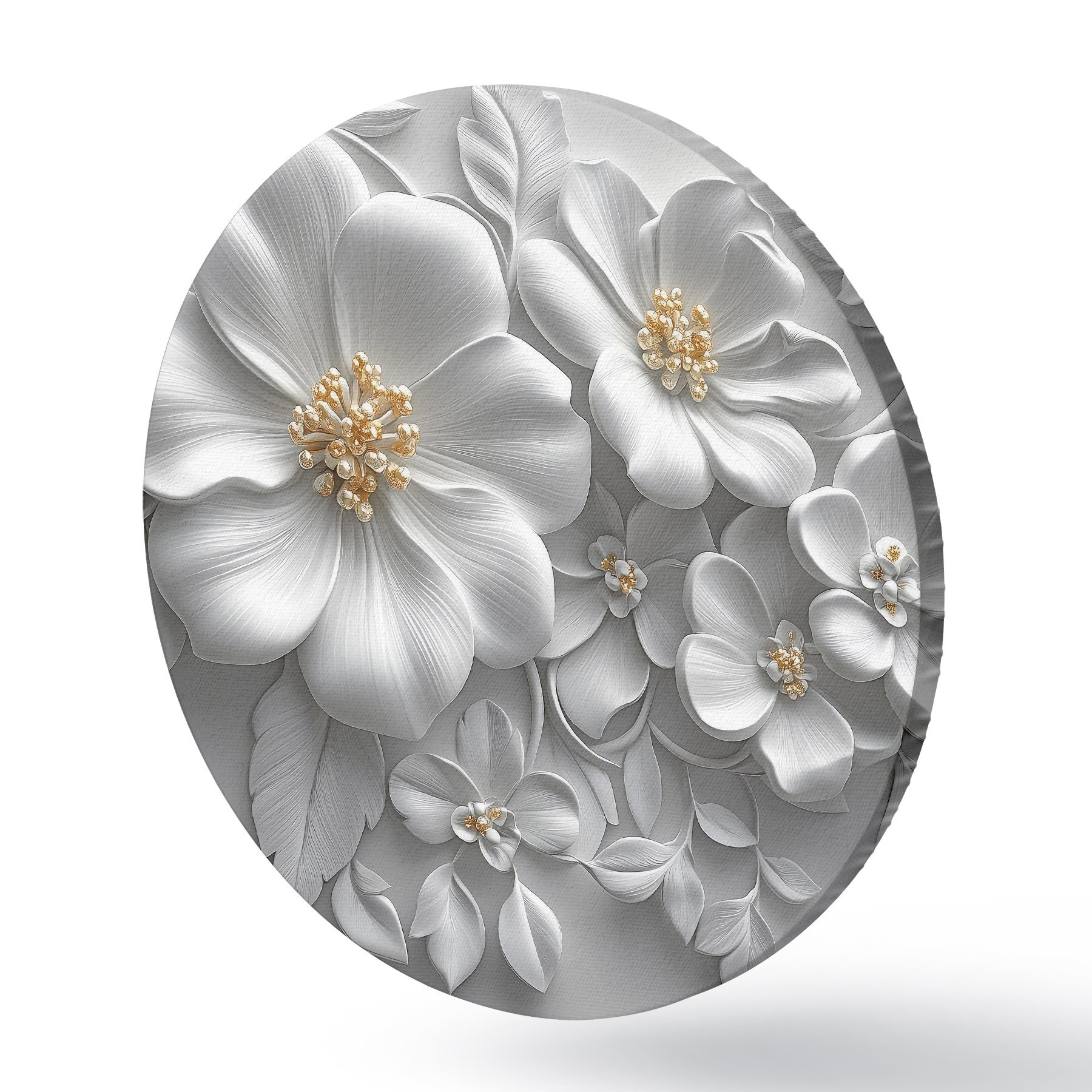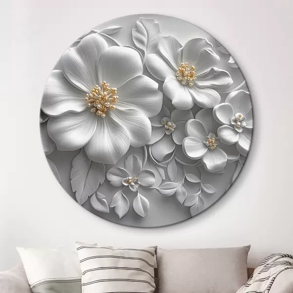 Runde Gemälde 3d graue Blumen mit einem gelben Akzent r43310