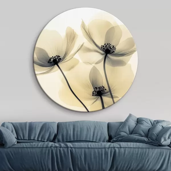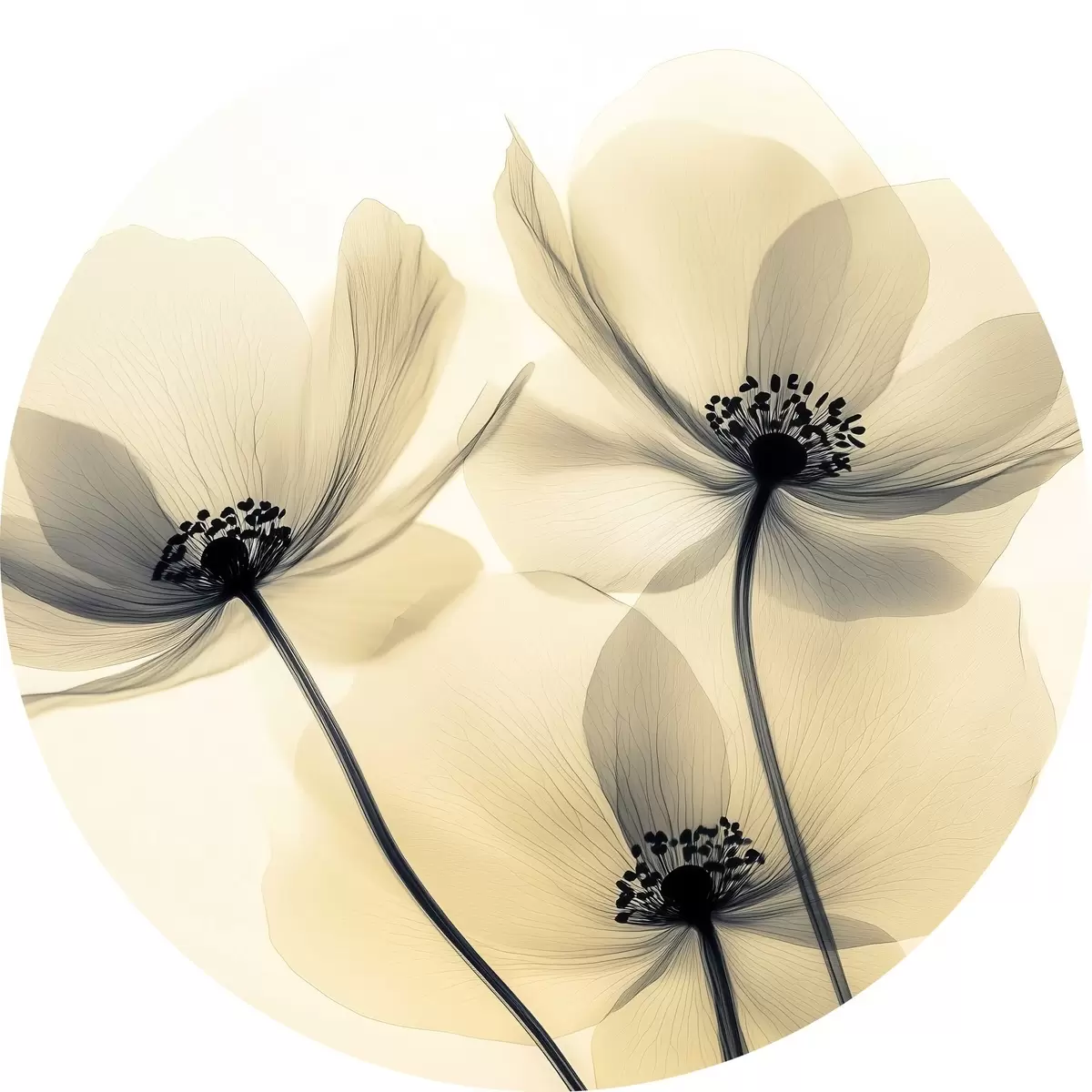 Runde Gemälde Zarte Blumen - Mohnblumen mit durchscheinenden Blütenblättern r43316