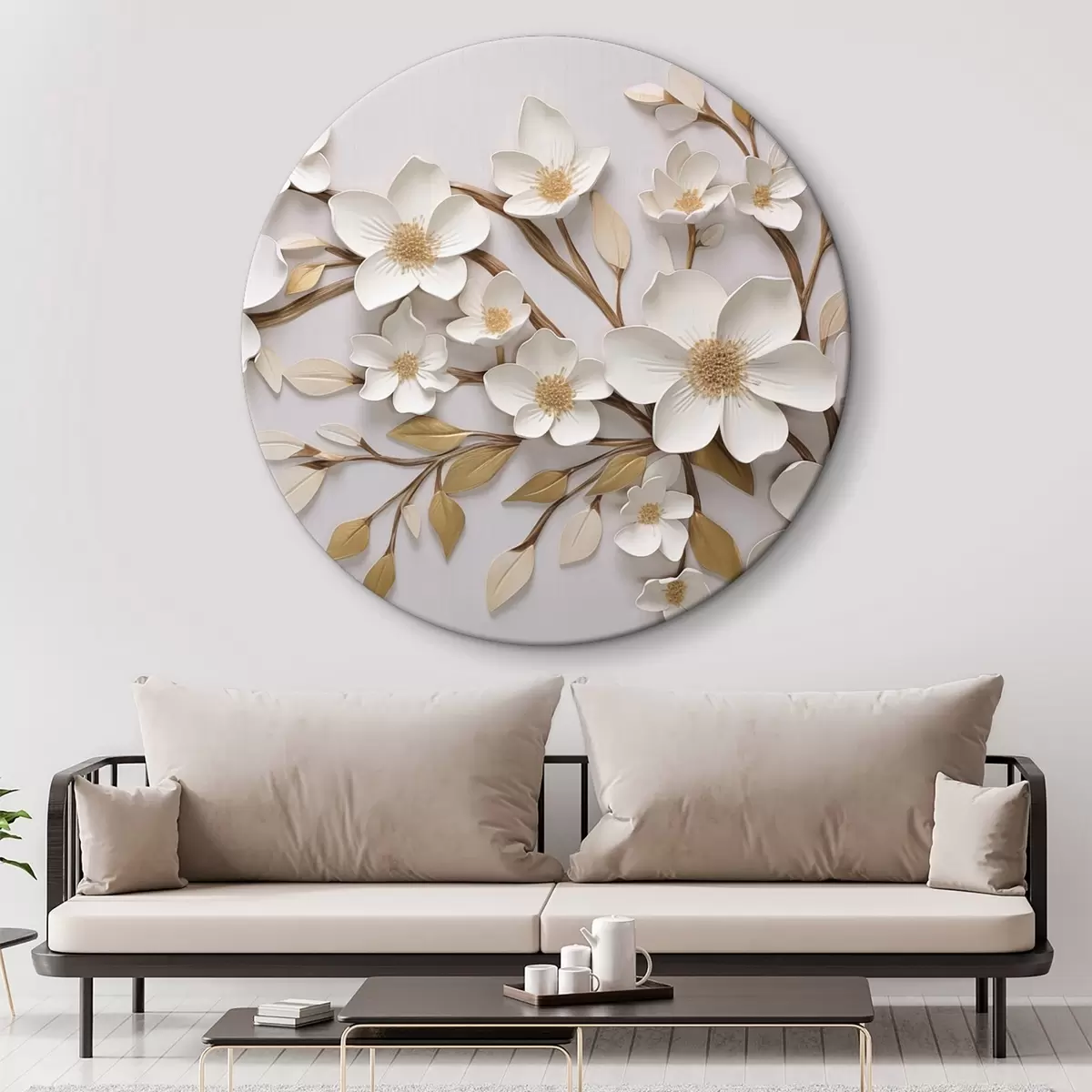 Runde Gemälde Große beige Blume r43331