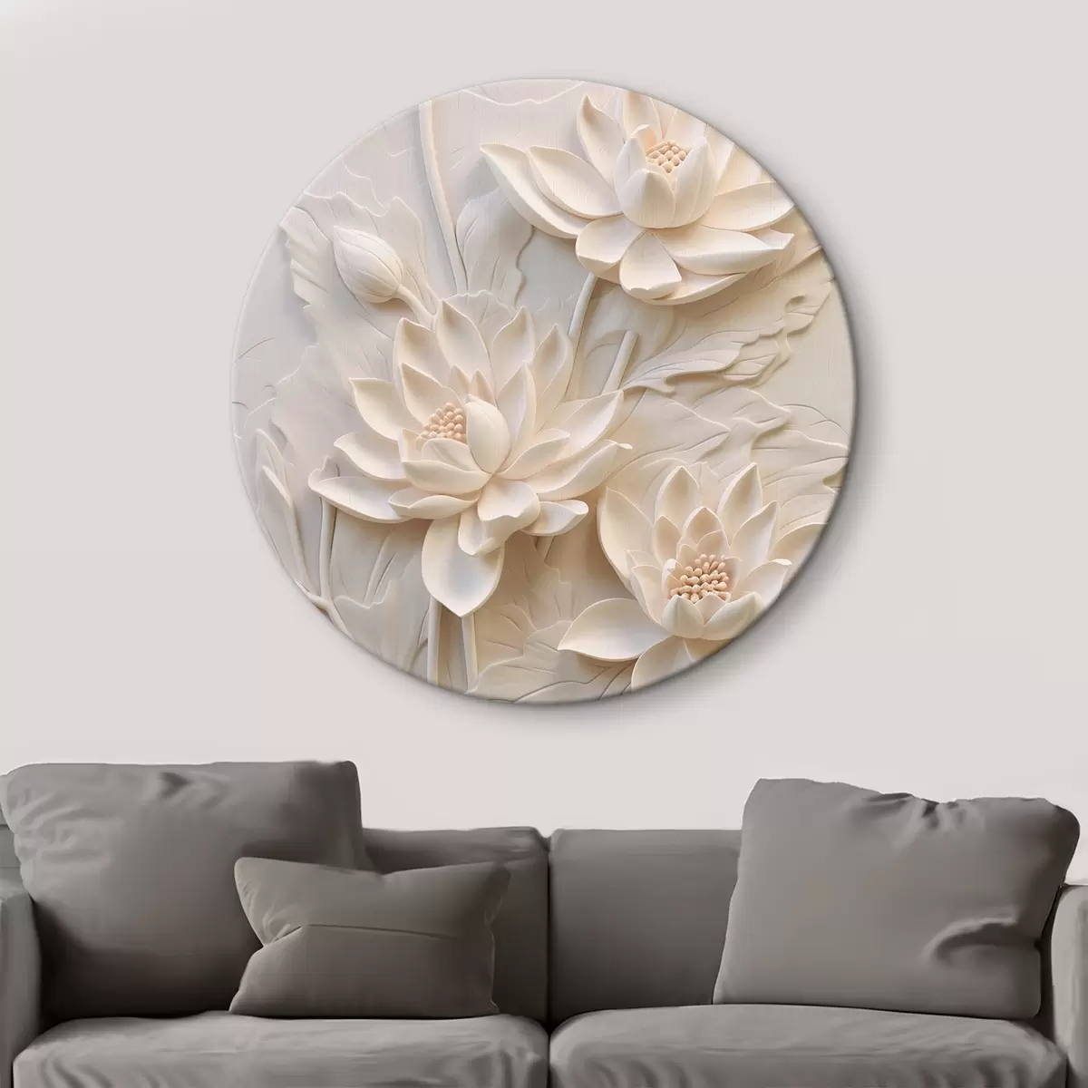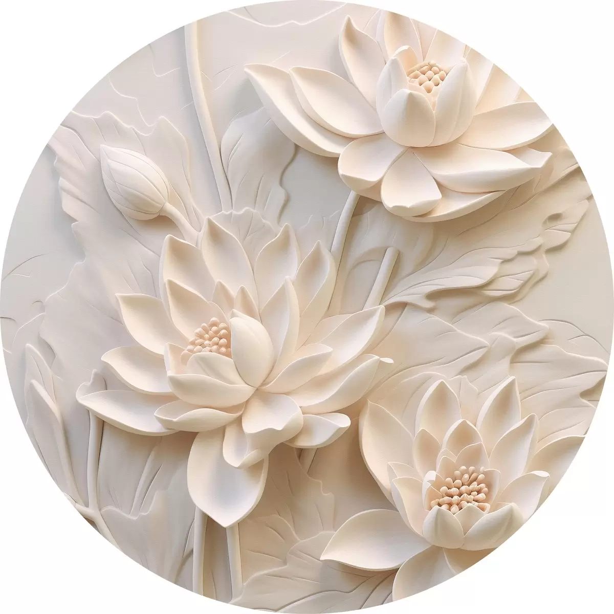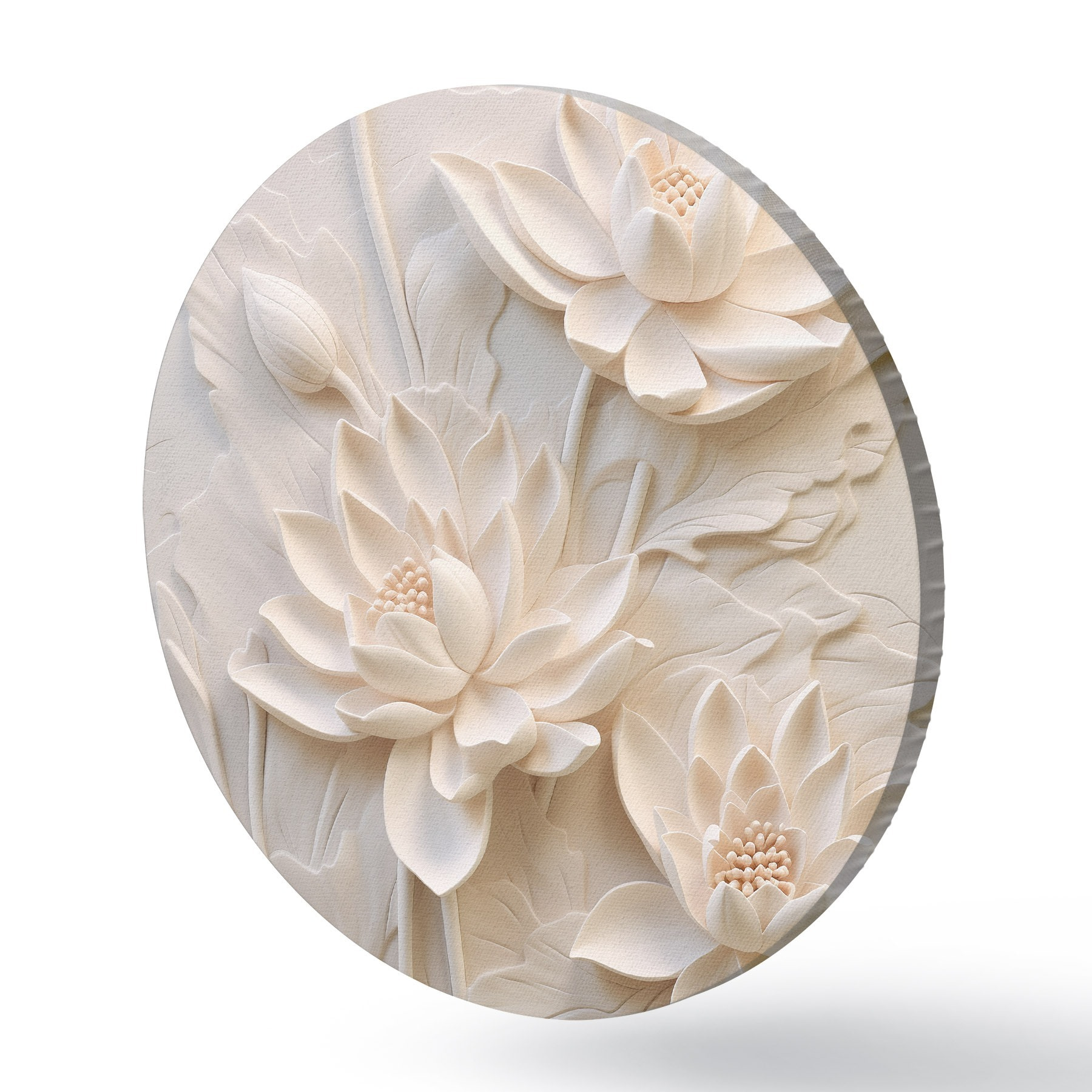 Runde Gemälde Weißer Stuck, Nachahmung, Blumen r43334