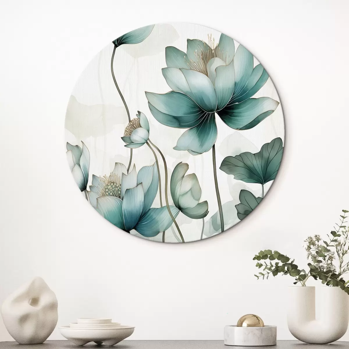 Runde Gemälde Aquarell Komposition, Lotusblumen r43339