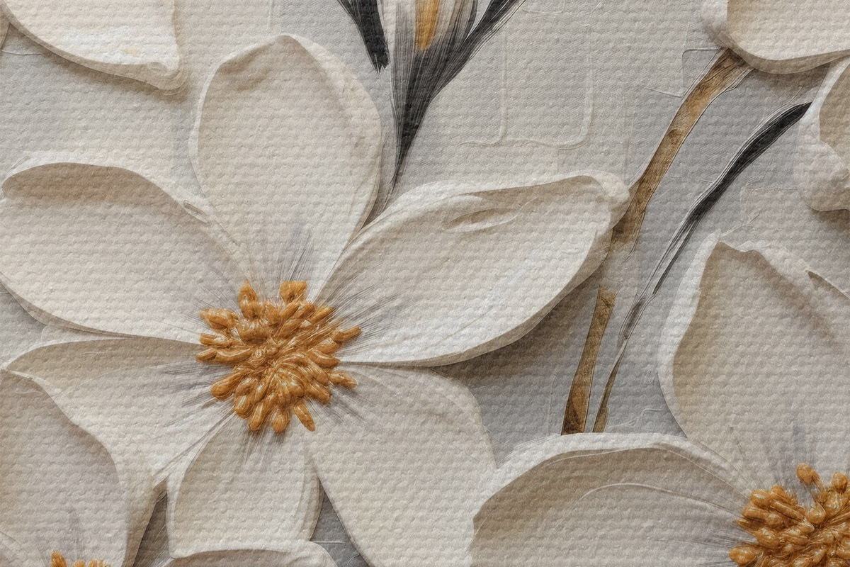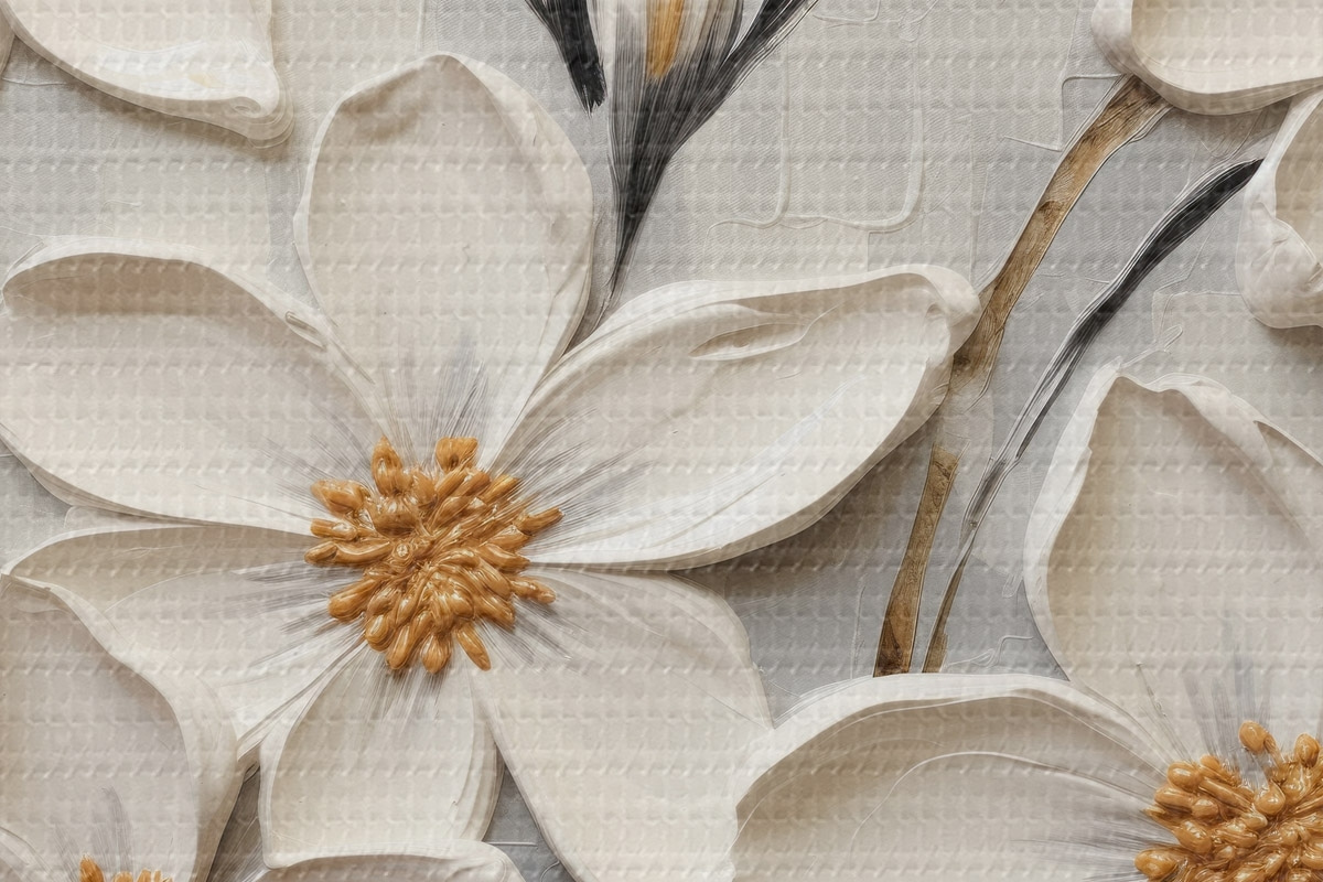 Bild Weiße voluminöse Blumen im Malstil mit großen Pinselstrichen Nr r43366
