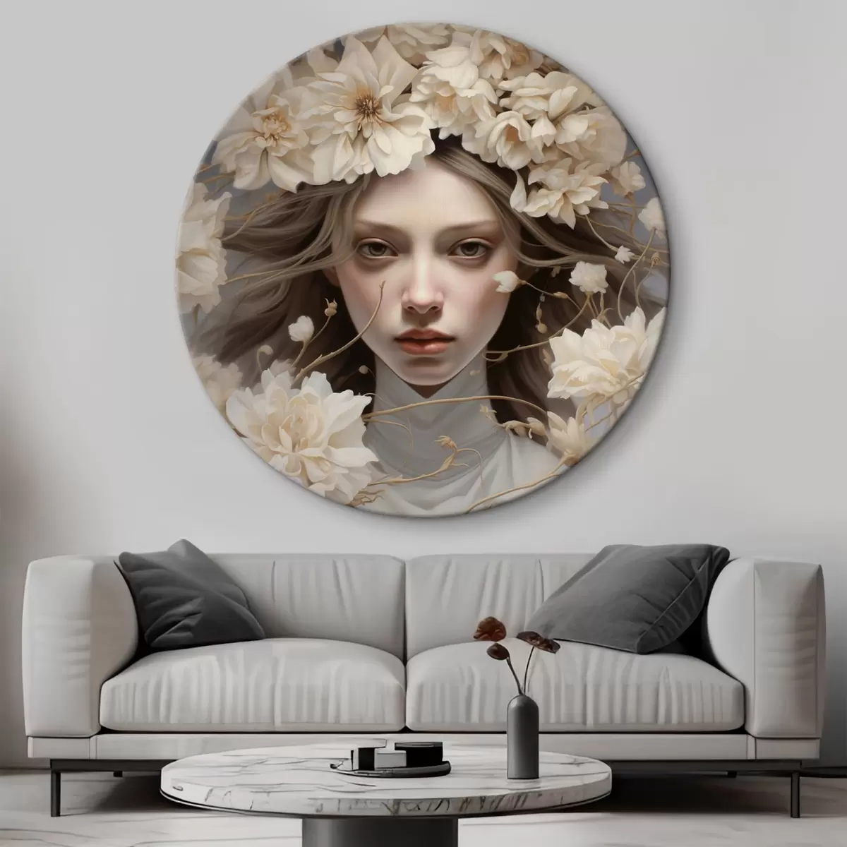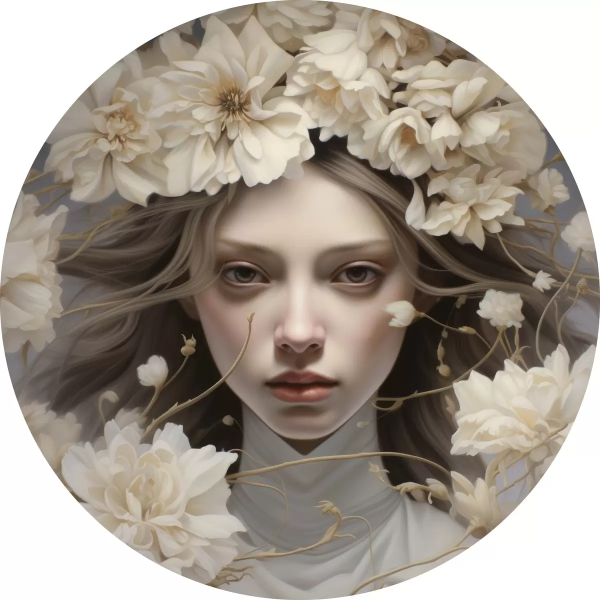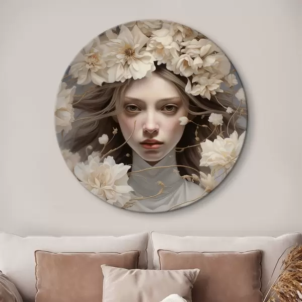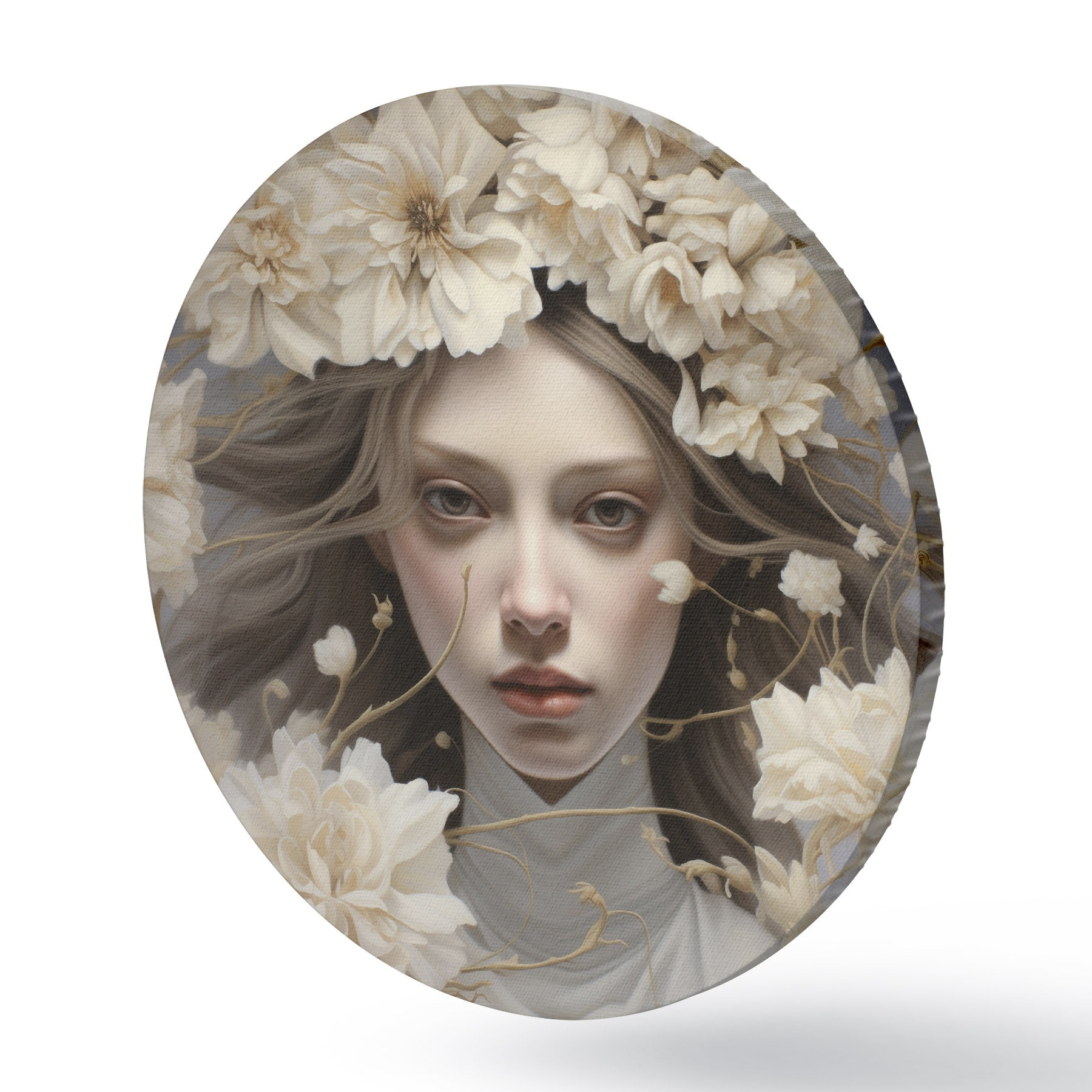 Runde Gemälde Mädchen in Blumen in ruhigen Tönen r43367