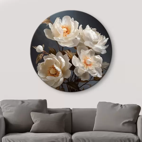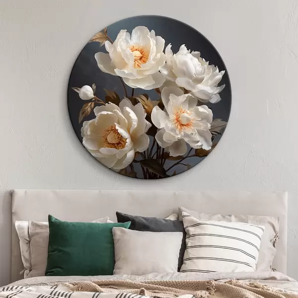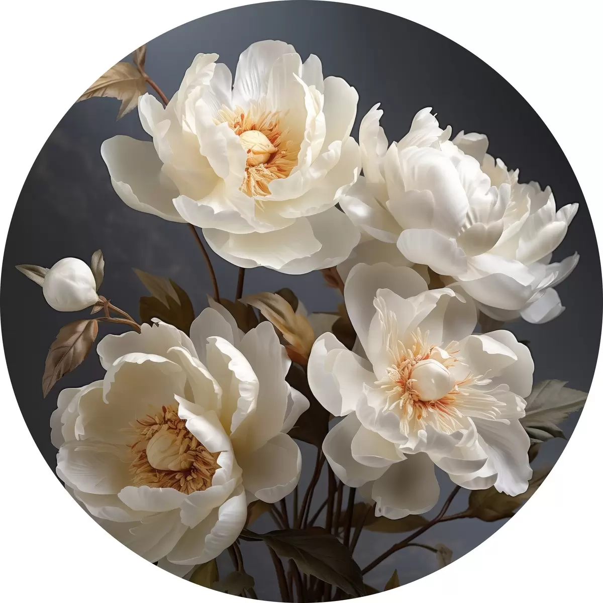 Runde Gemälde Zusammensetzung der weißen Pfingstrosen r43368
