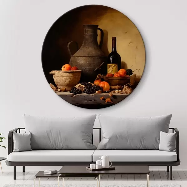 Runde Gemälde Klassisches Stillleben mit warmer Beleuchtung r43369