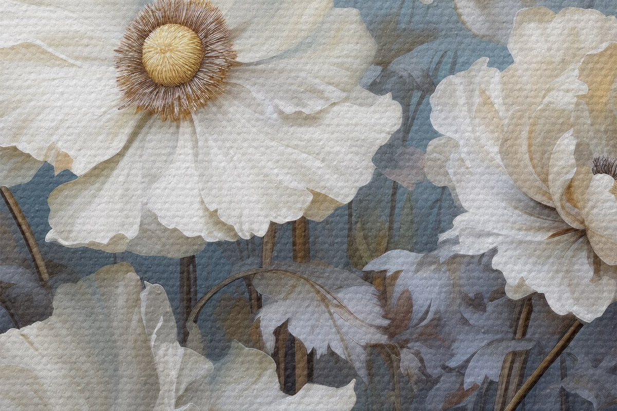 Bild Weißer Blumenstrauß aus Pfingstrosen auf blauem Hintergrund im Malstil Nr r43370