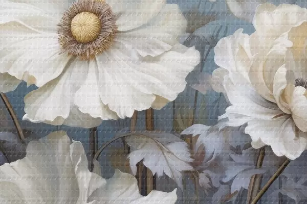 Bild Weißer Blumenstrauß aus Pfingstrosen auf blauem Hintergrund im Malstil Nr r43370