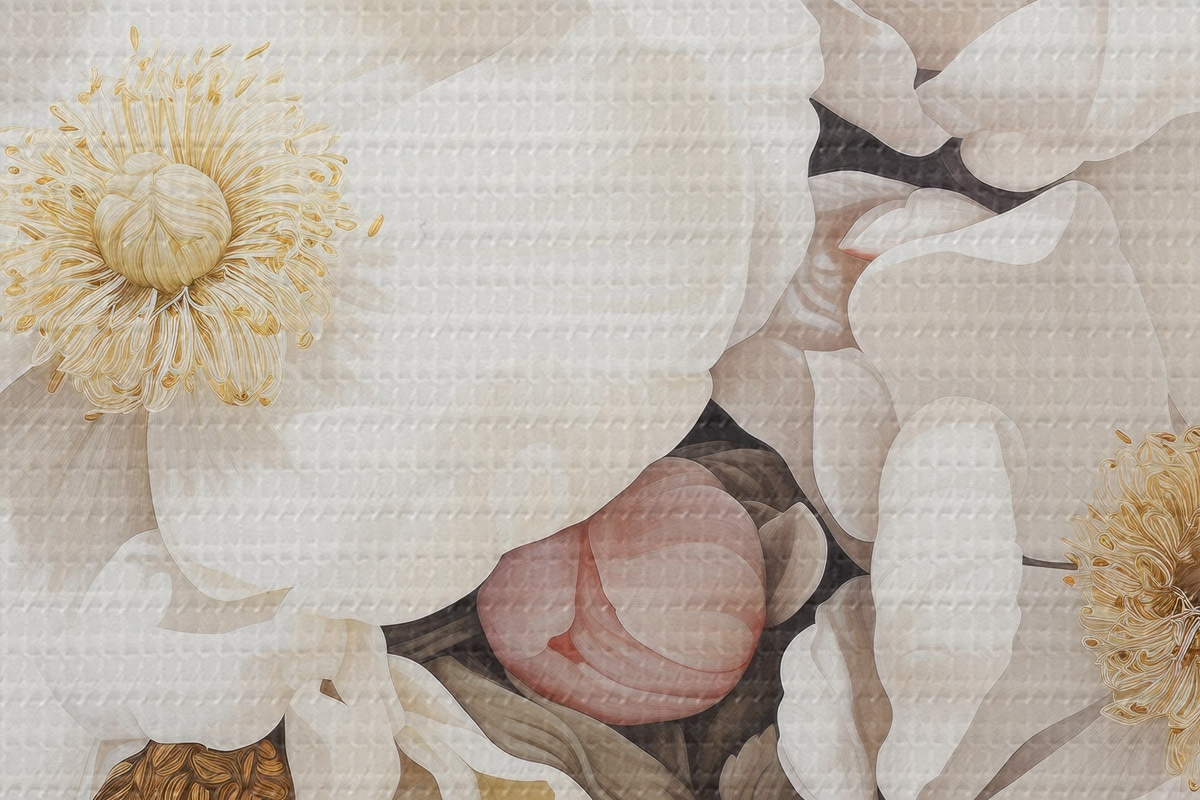 Bild Weiße Pfingstrose Blumen auf einem dunklen Hintergrund in Acrylmalerei Stil Nr r43379