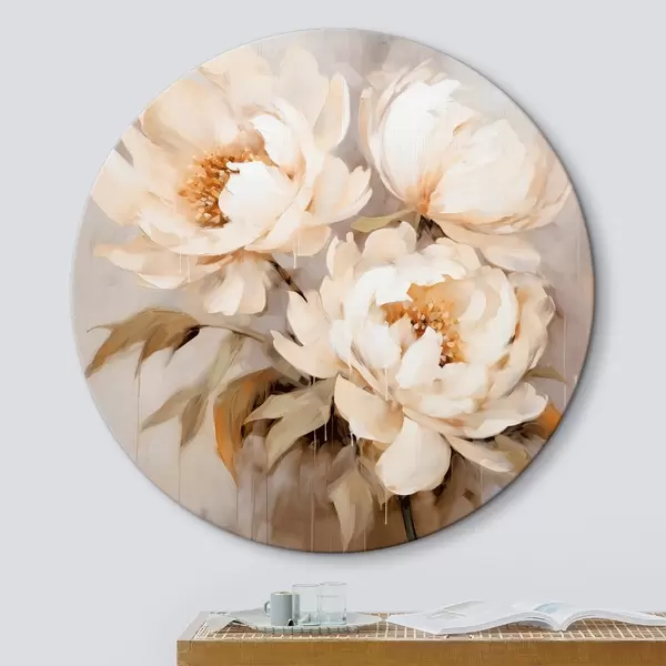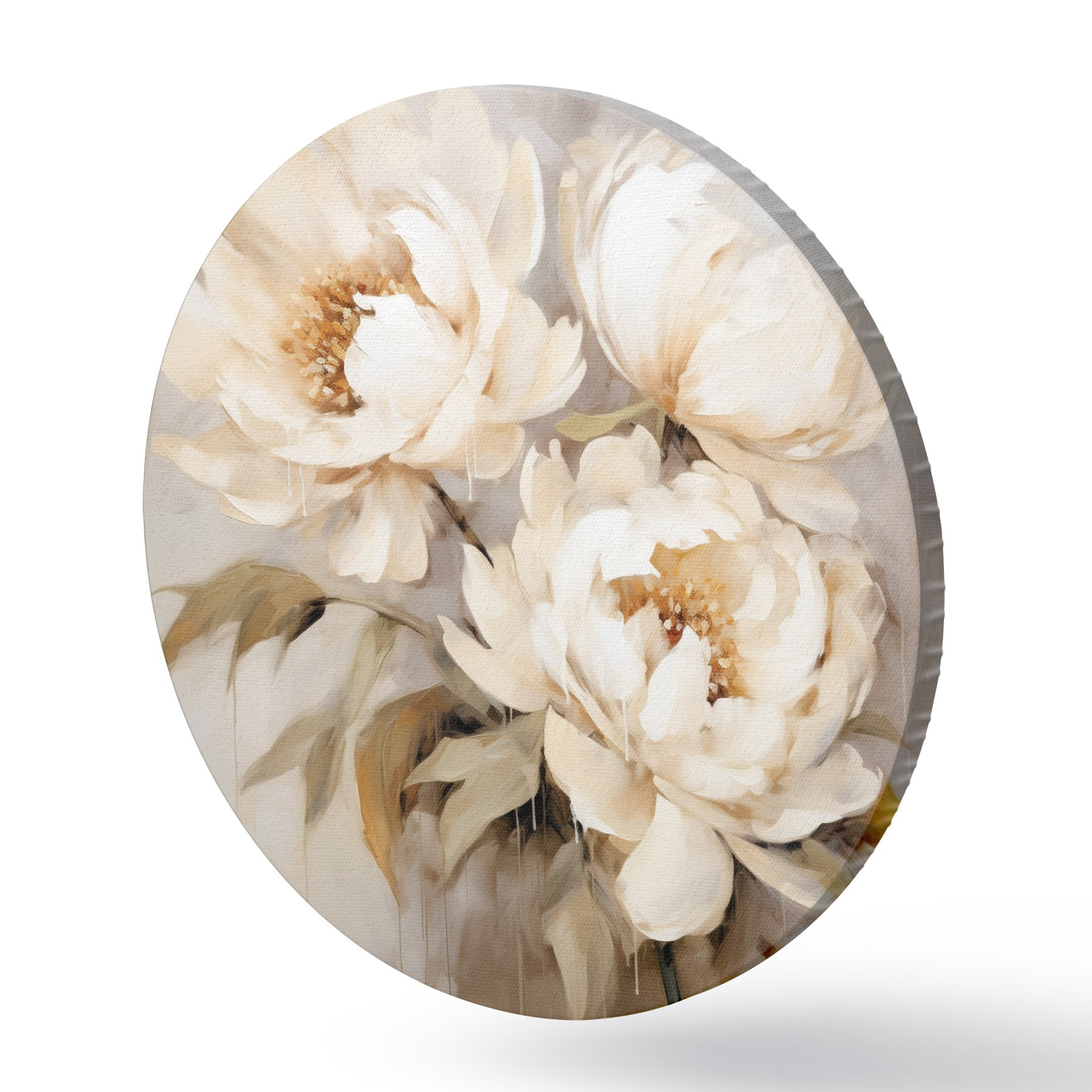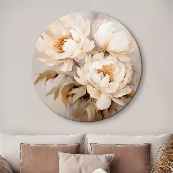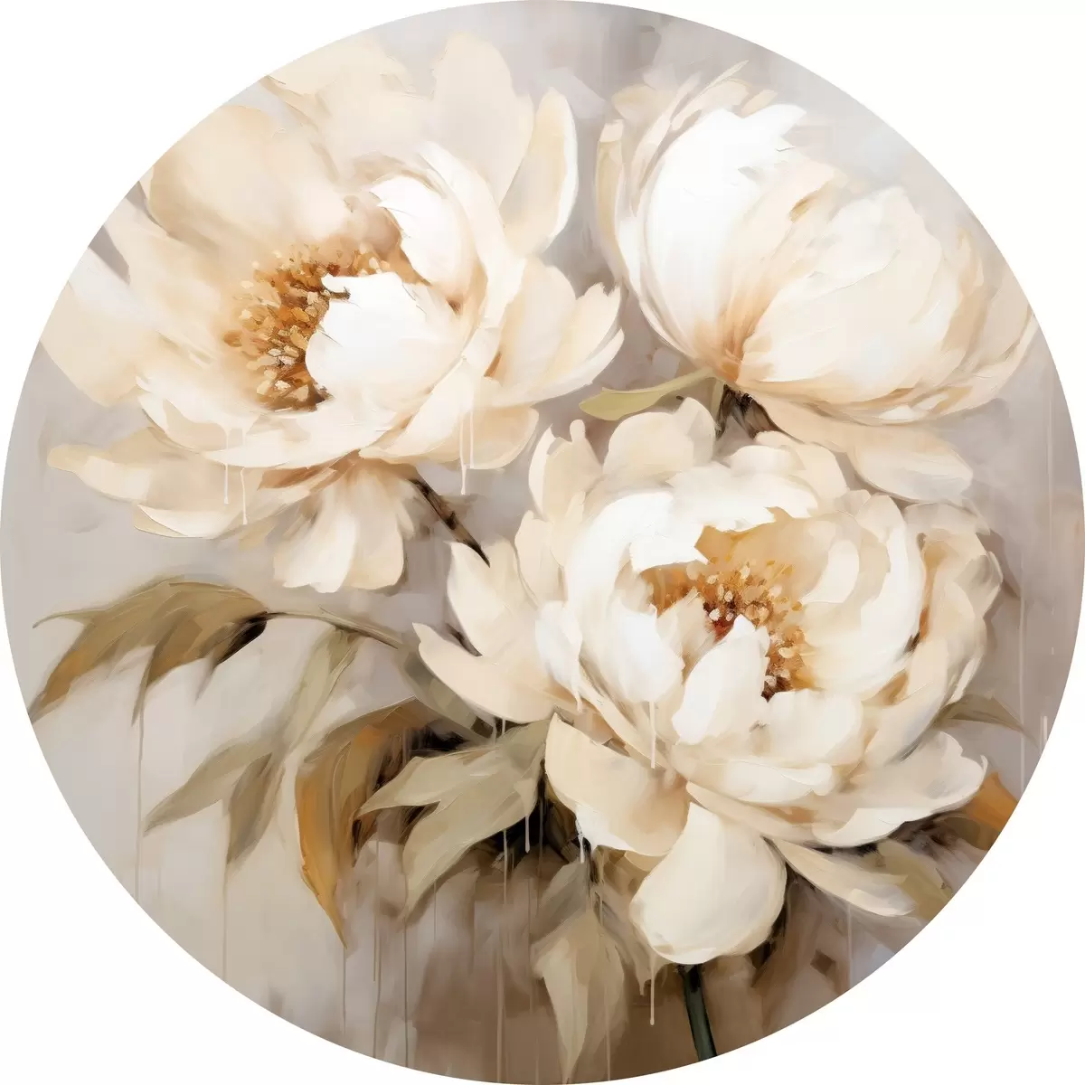 Runde Gemälde Zarte Pfingstrosen in neutralen Tönen im Stil abstrakter Malerei r43387