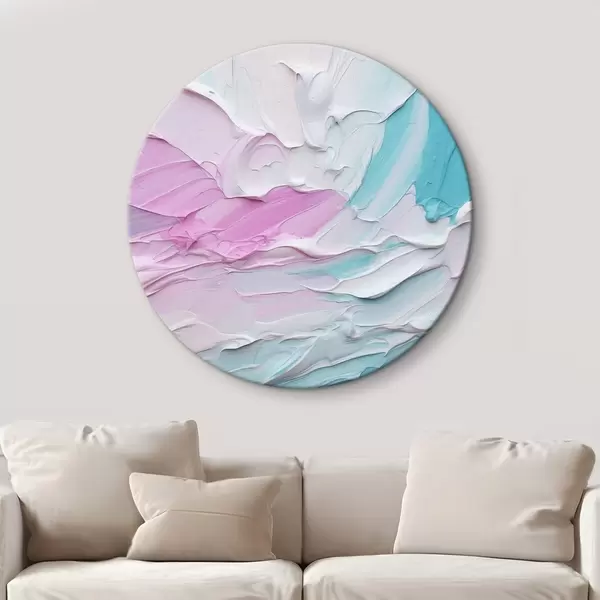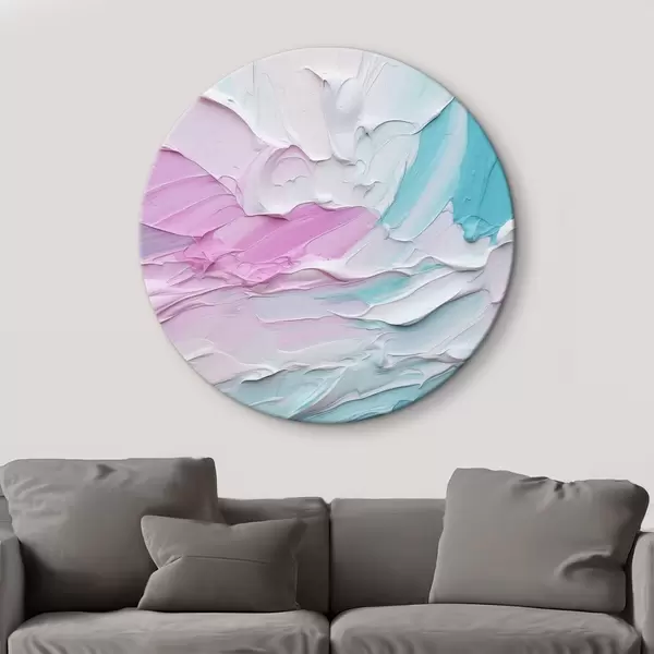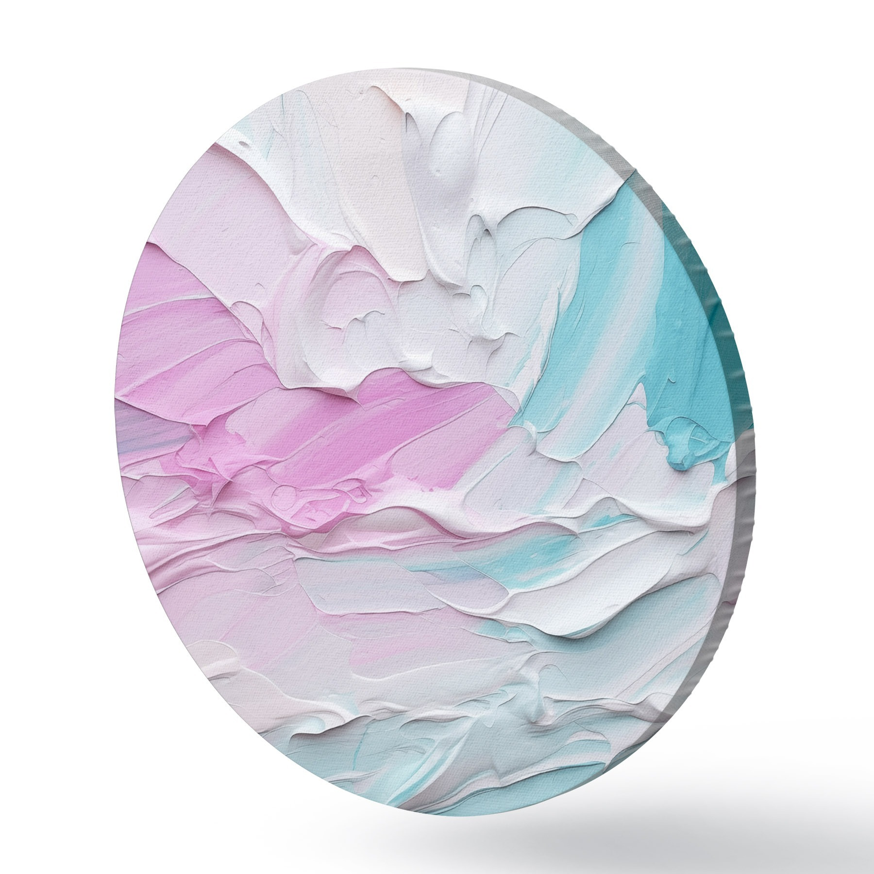 Runde Gemälde Eine abstrakte Ölgemälde-Imitation mit dicken Strichen aus rosa, weißer und türkiser Farbe, die einen strukturierten Effekt erzeugen r43393