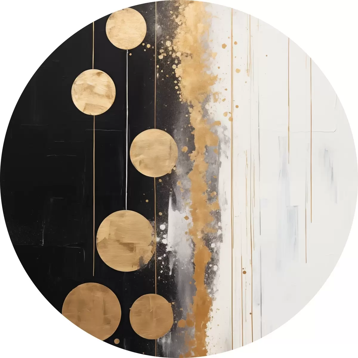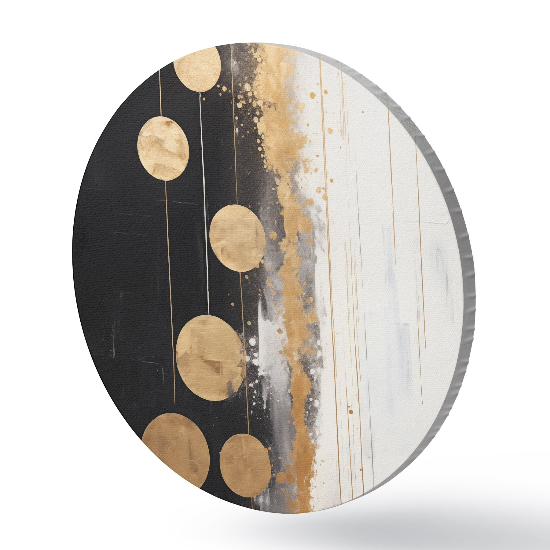 Runde Gemälde Abstrakte Kunst mit gelben Kreisen auf schwarzem und weißem Hintergrund mit weißen und gelben Flecken hängen r43410