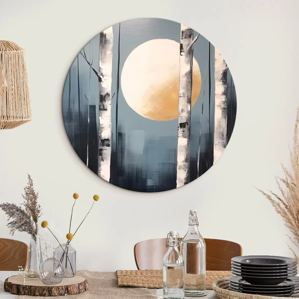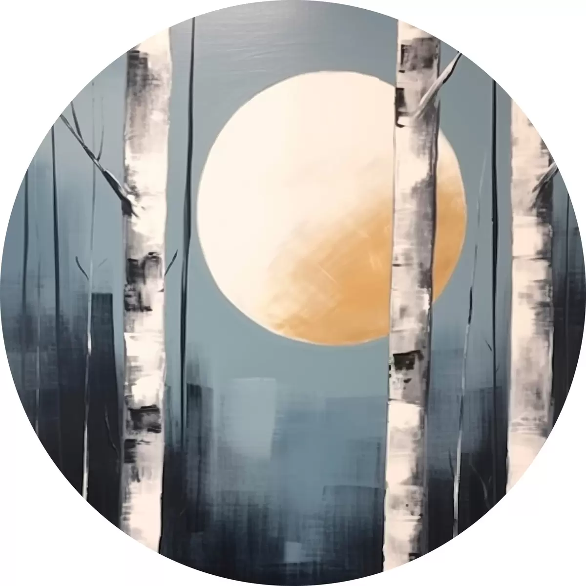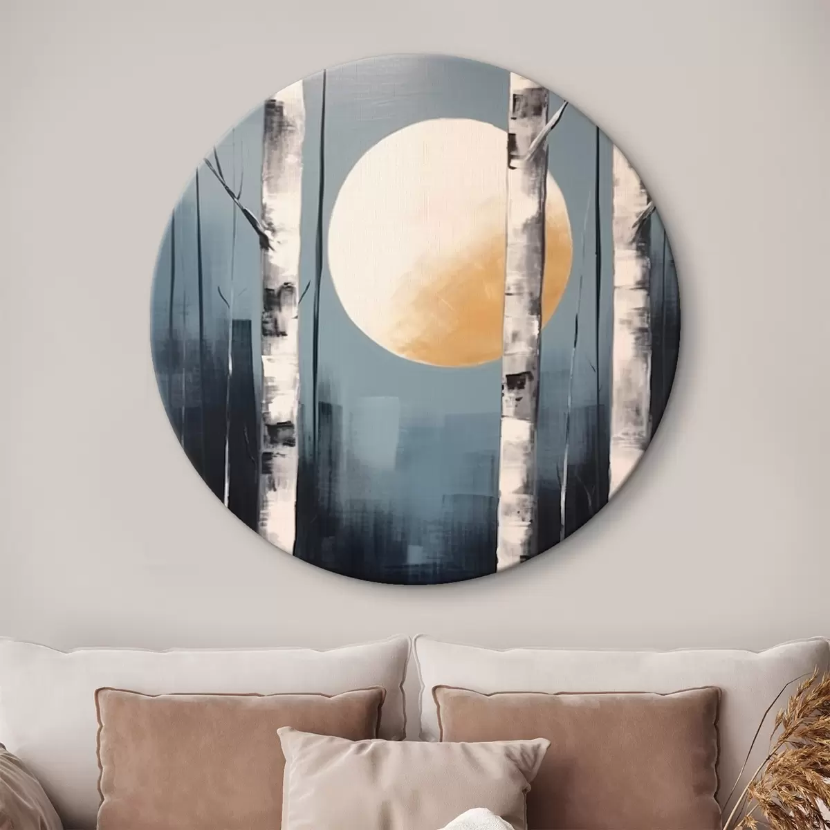 Runde Gemälde Grafische Darstellung eines Birkenwaldes r43413