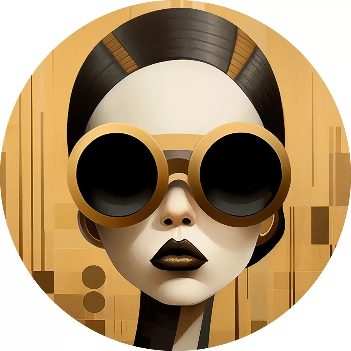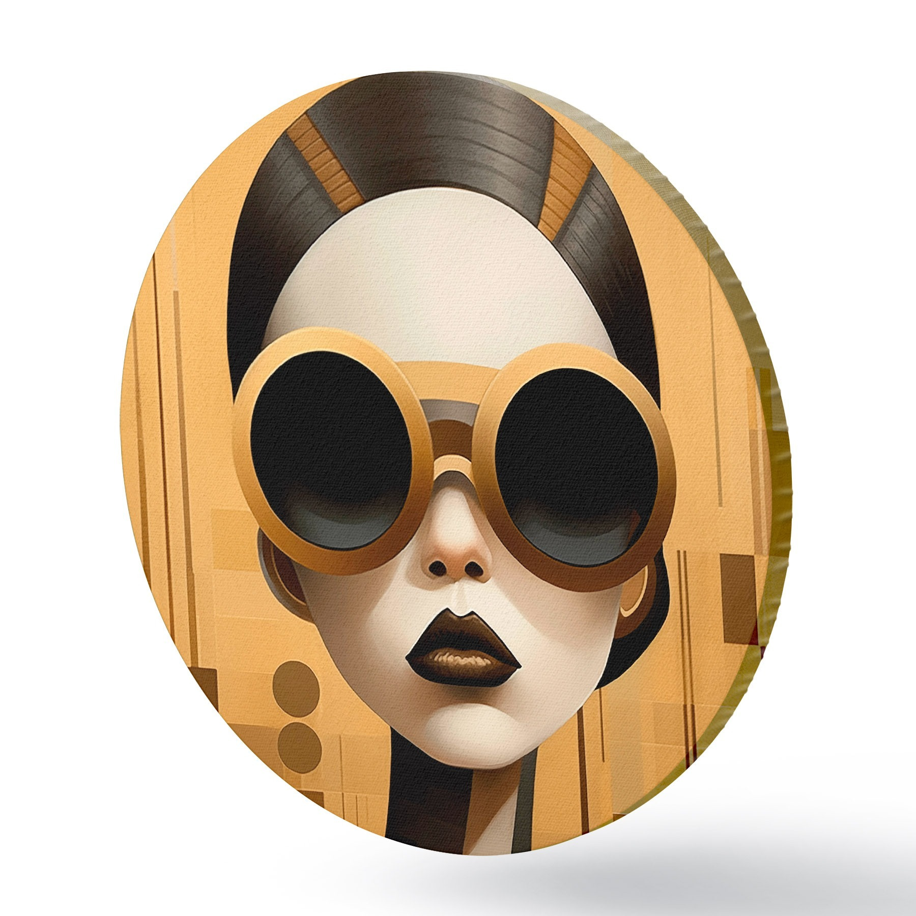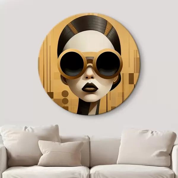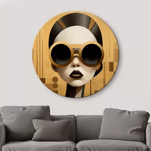 Runde Gemälde Dekoratives Frauenporträt im Retrostil r43415