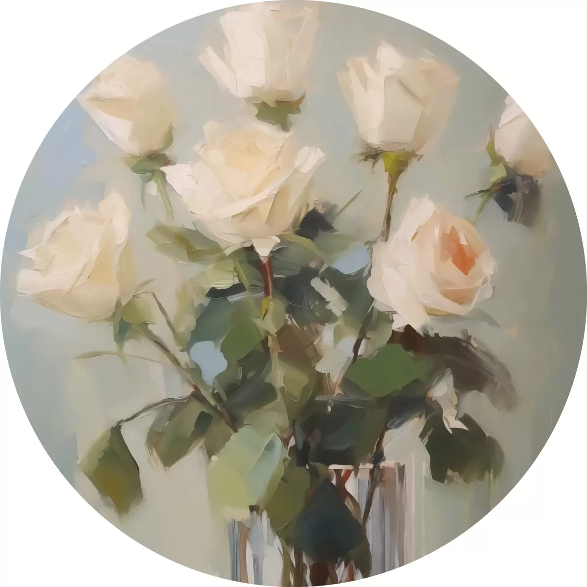 Runde Gemälde Rosen in einer Glasvase Nachahmung Malerei r43432