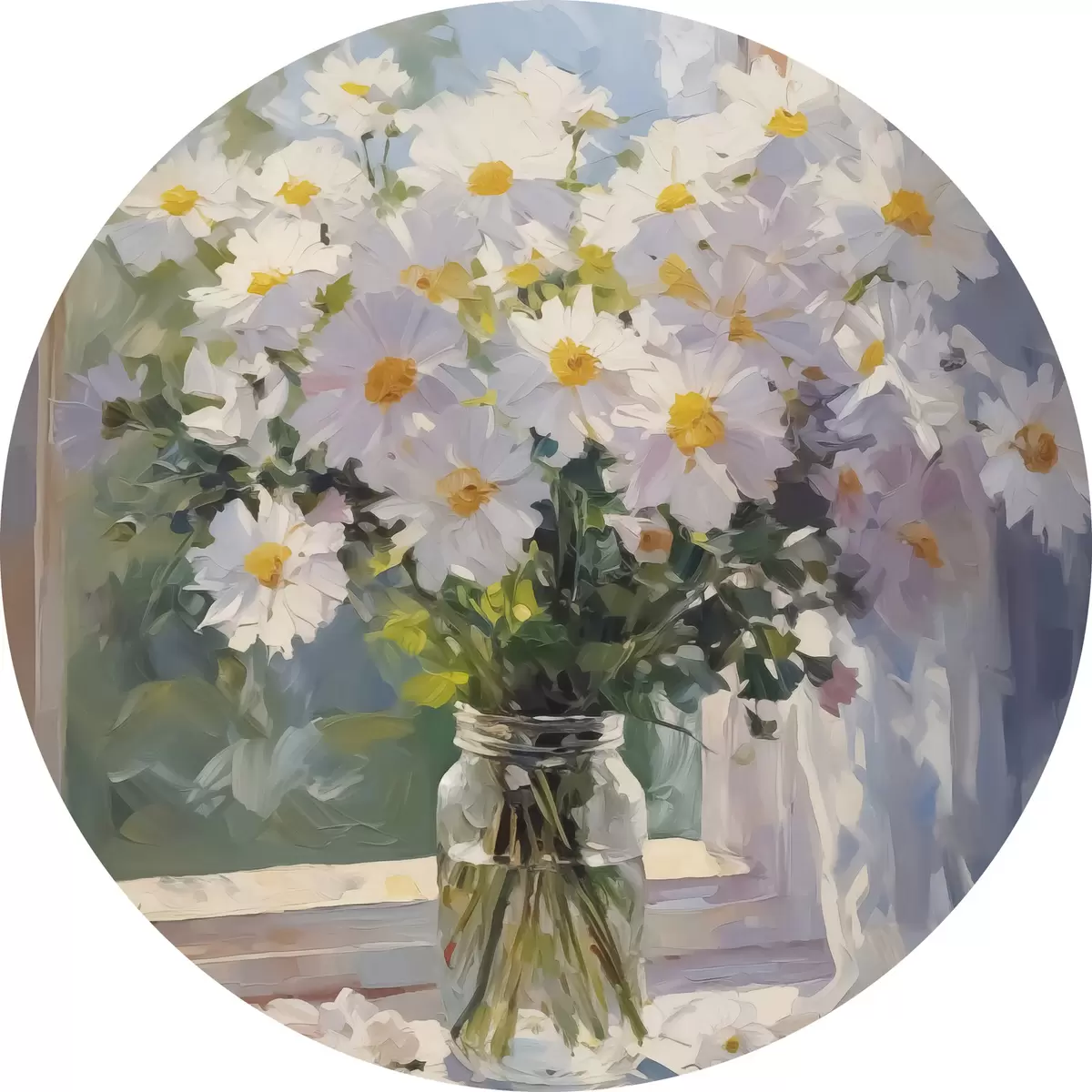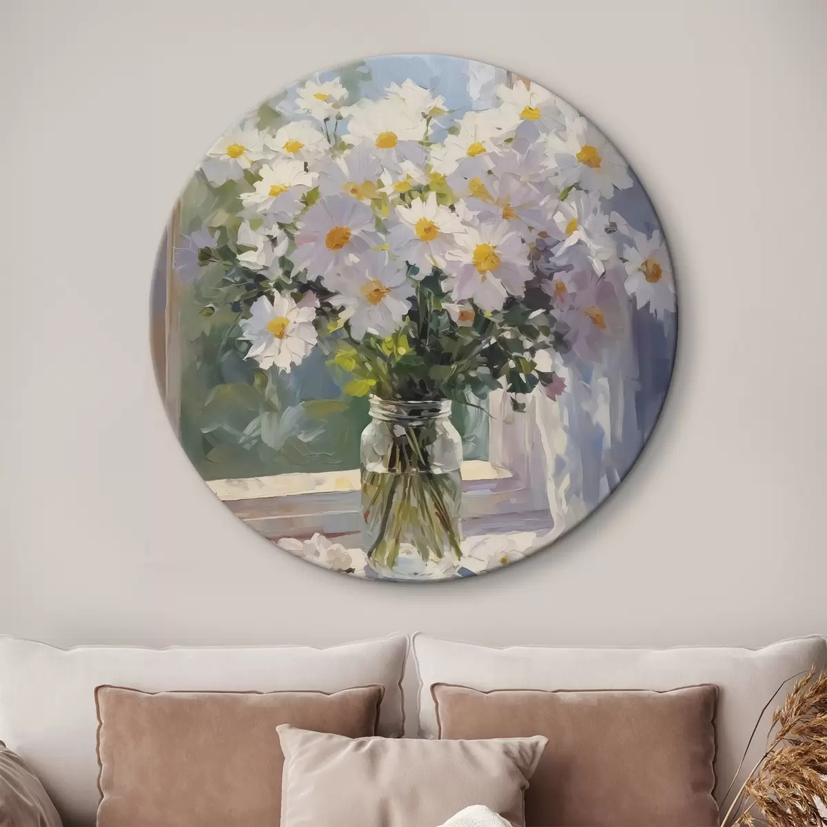 Runde Gemälde Gänseblümchen in einer Vase Nachahmung der Malerei r43434