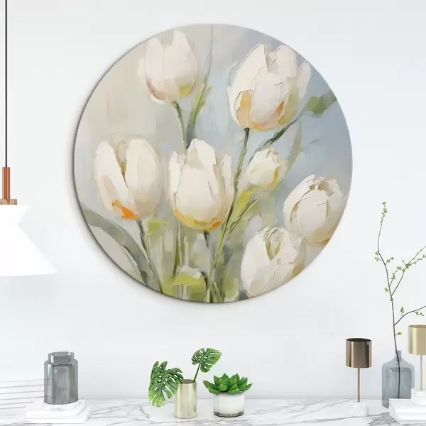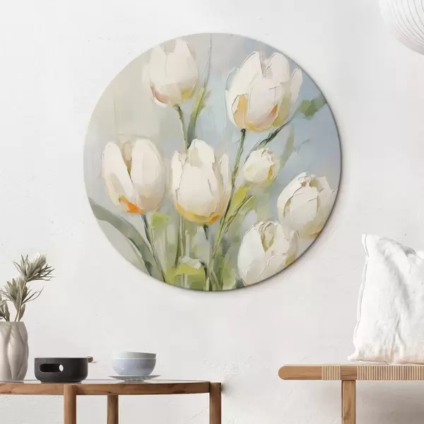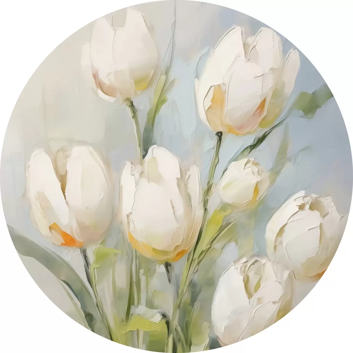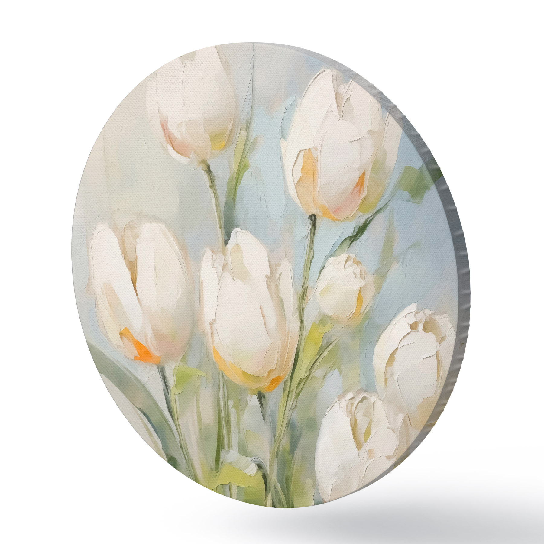 Runde Gemälde Weiße Tulpen Nachahmung Malerei r43435