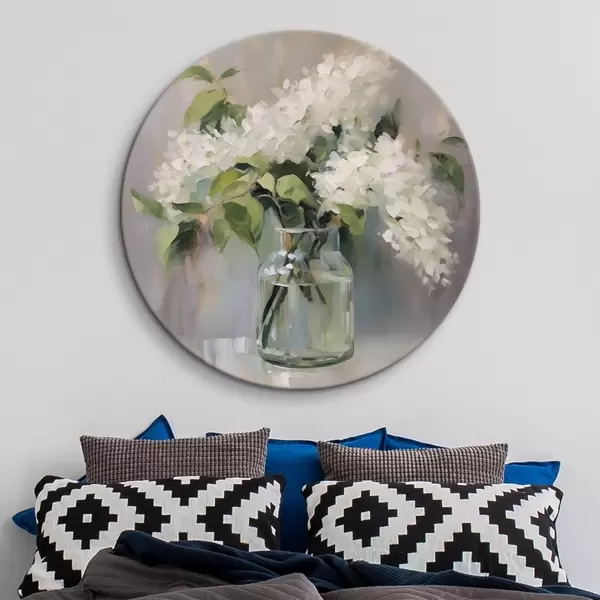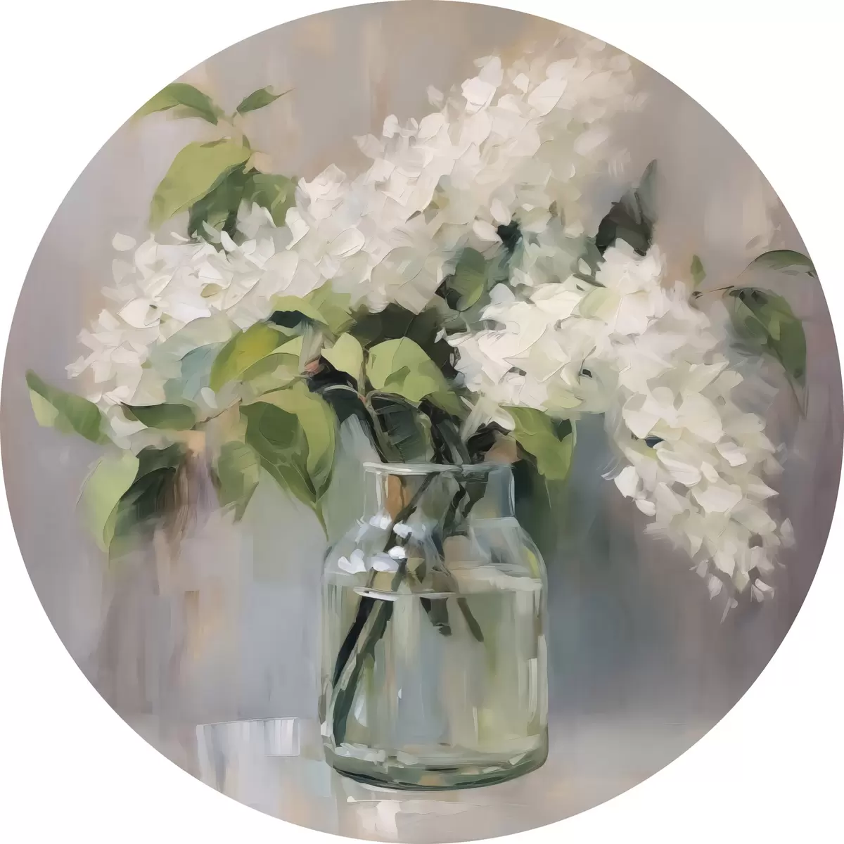 Runde Gemälde Weißer Flieder in einer Vase Nachahmung der Malerei r43439