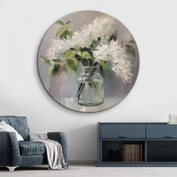 Runde Gemälde Weißer Flieder in einer Vase Nachahmung der Malerei r43439