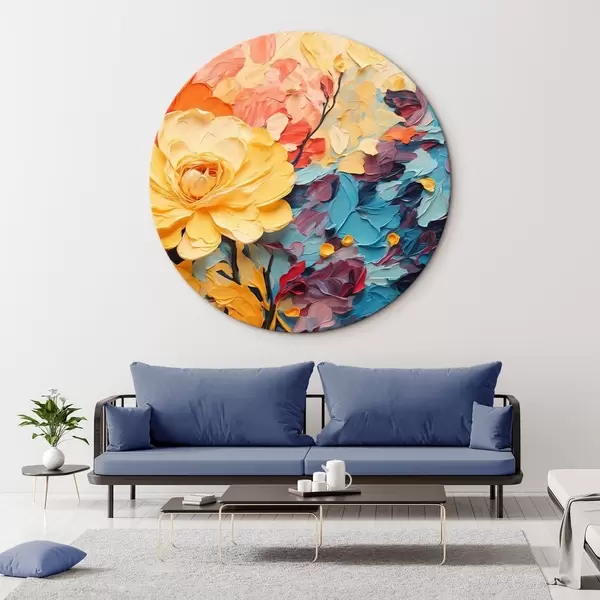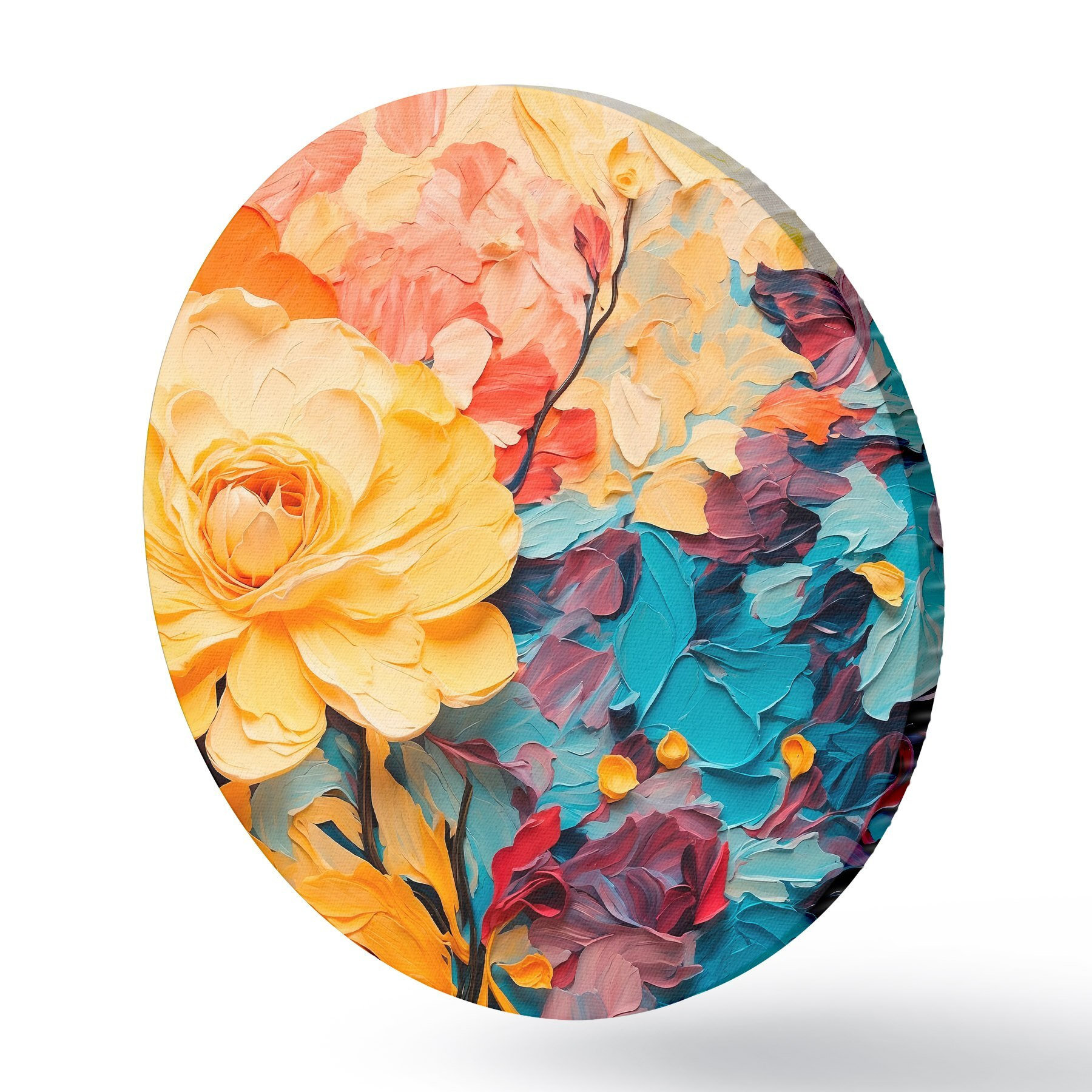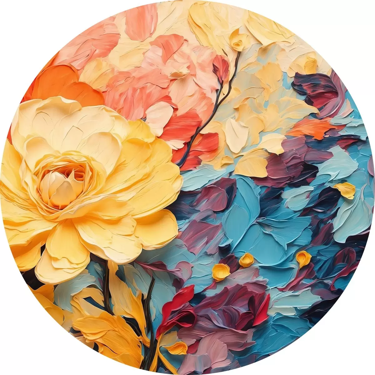 Runde Gemälde Blumen auf abstraktem Hintergrund im Stil der Ölmalerei r43442