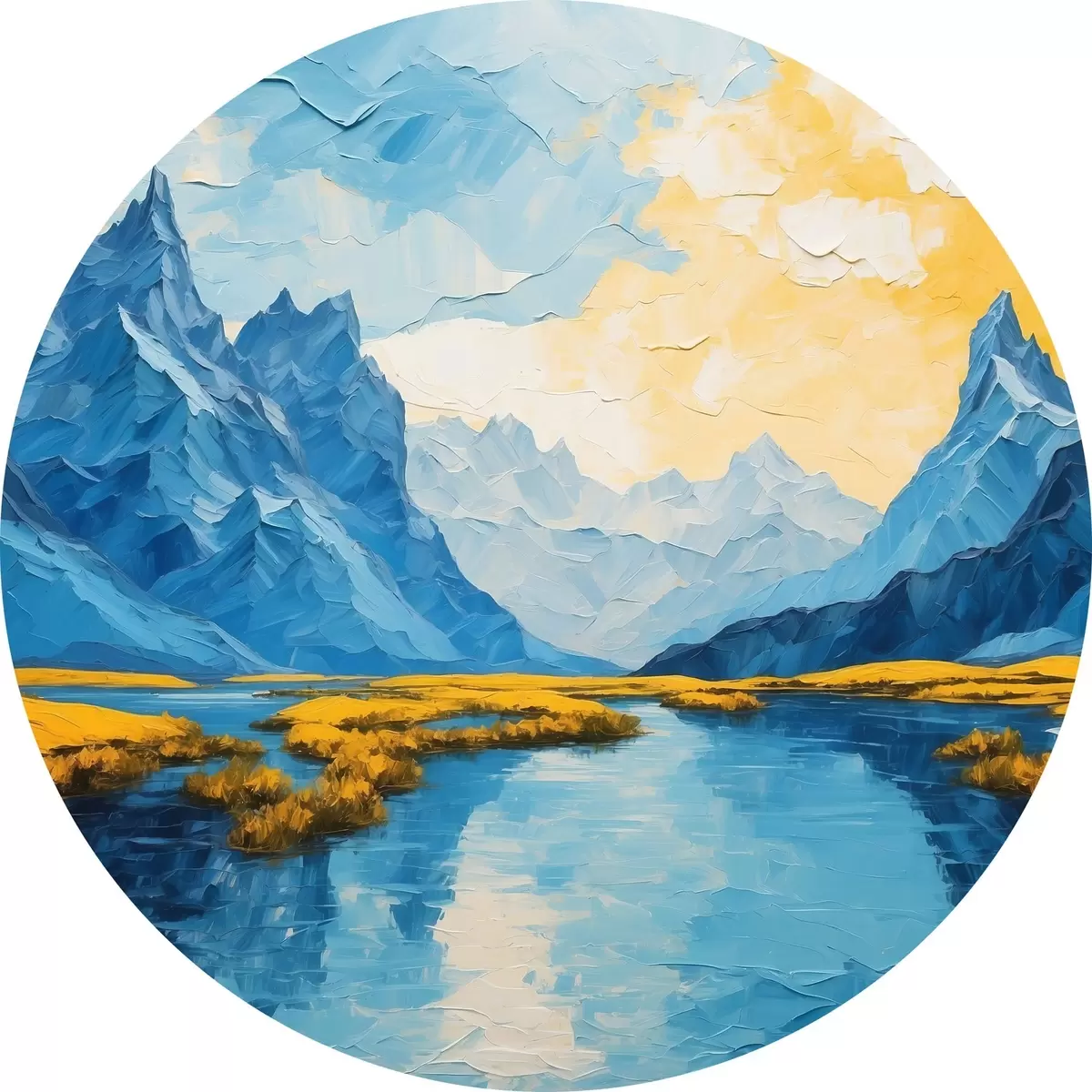 Runde Gemälde See in den Bergen r43449