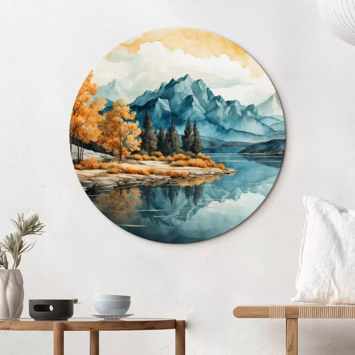 Runde Gemälde Fluss, der in die Berge führt r43450