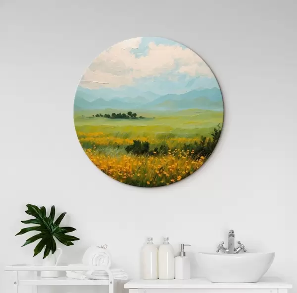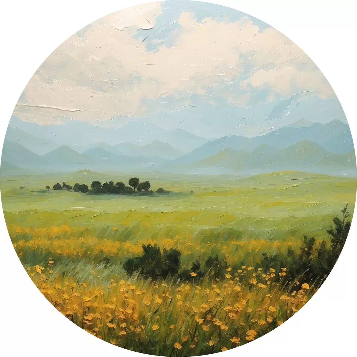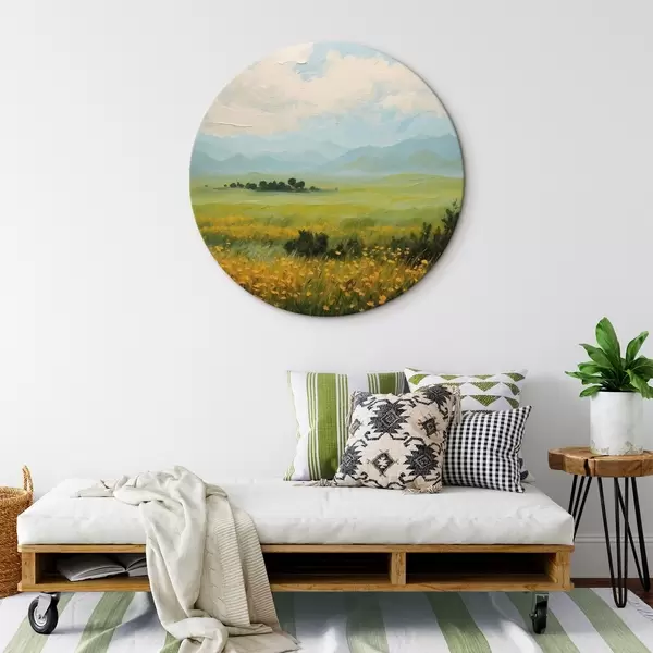 Runde Gemälde Blumenfeld im Stil der Ölmalerei r43451