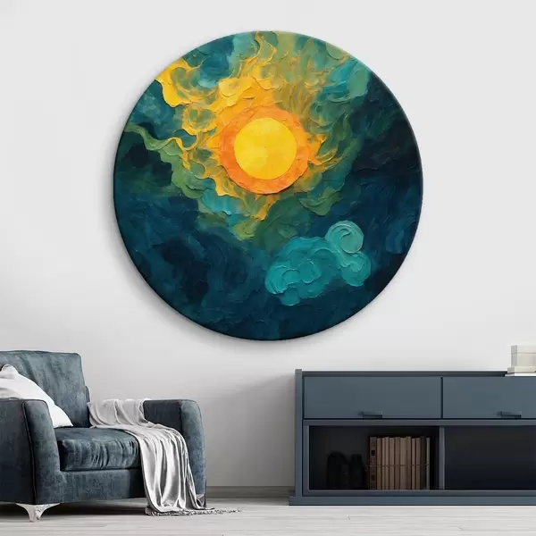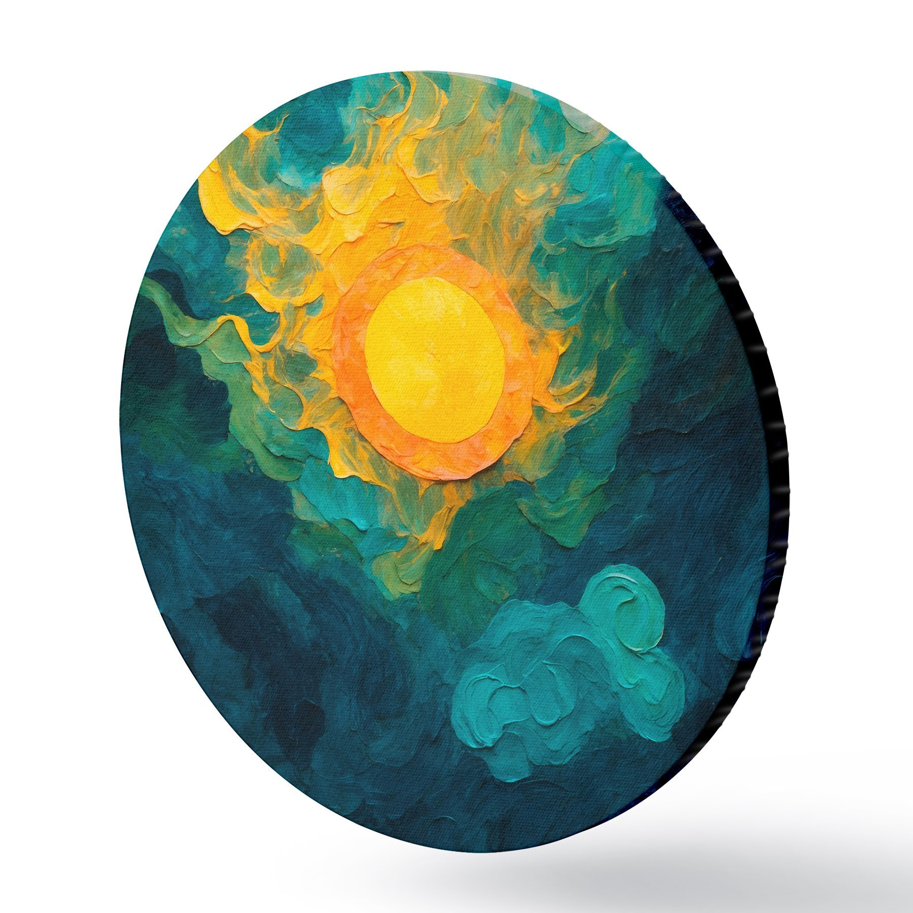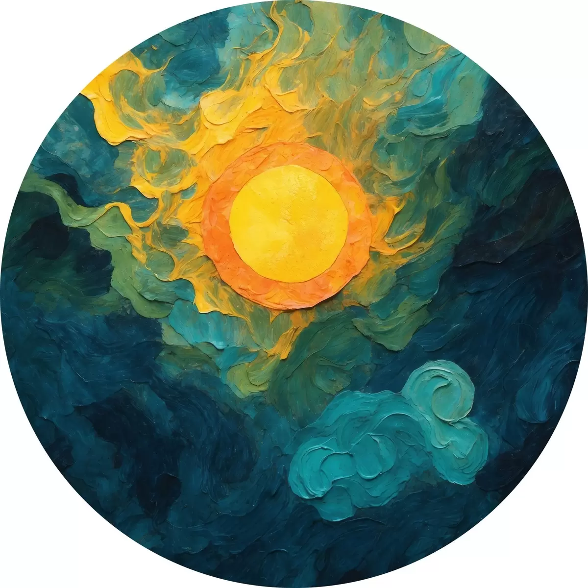 Runde Gemälde Sonne auf dunklem Hintergrund im Stil der Ölmalerei r43459